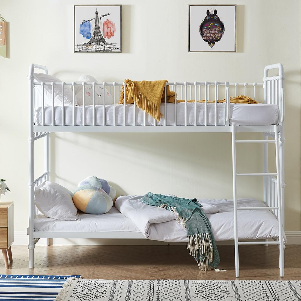 Create a super cool sleeping spot for siblings; the Mungo Metal Bunk Bed offers so much more room for activities if space is tight. Made from metal this robust double-decker is sure to handle even the most energetic boys and girls. But who will get the top bunk? With storage space below, they'll be able to hide away all their little toys and games, resulting in a mess-free bedroom, hopefully! With two colours to choose from, both able to suit all existing interiors, whichever you choose, your kids are sure to be buzzing with their new bedtime base!.