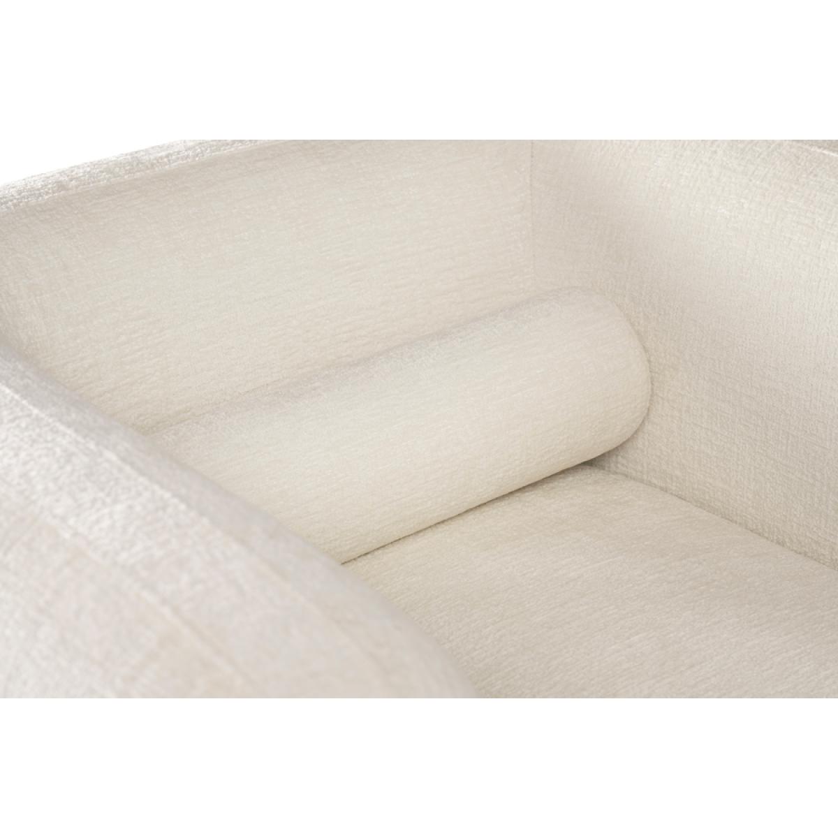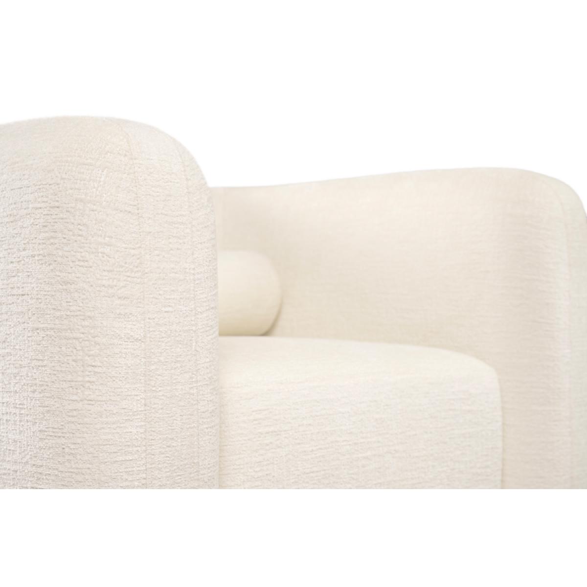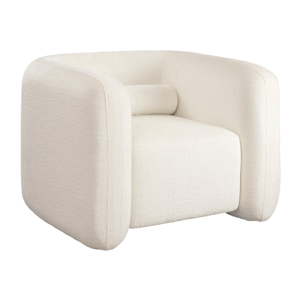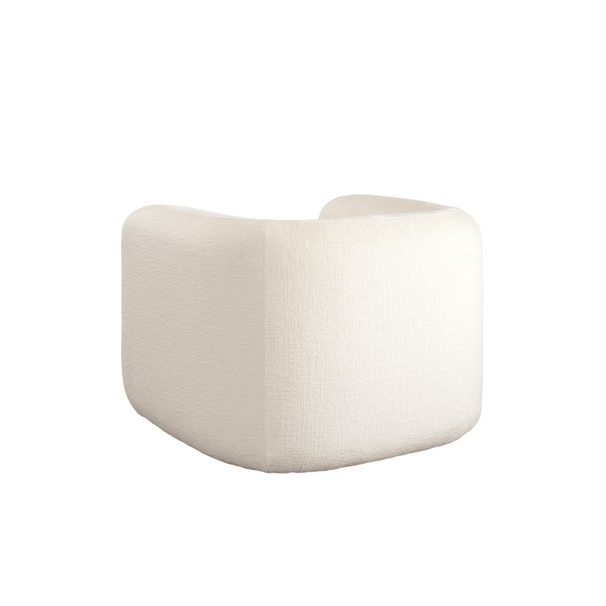 A sculptural contemporary armchair featuring flowing curvaceous lines. Comfortable sprung seat and back with generous deep foam and fibre filling. Upholstered in a soft, tactile, chenille fabric. Foam and fibre-filled bolster cushion.