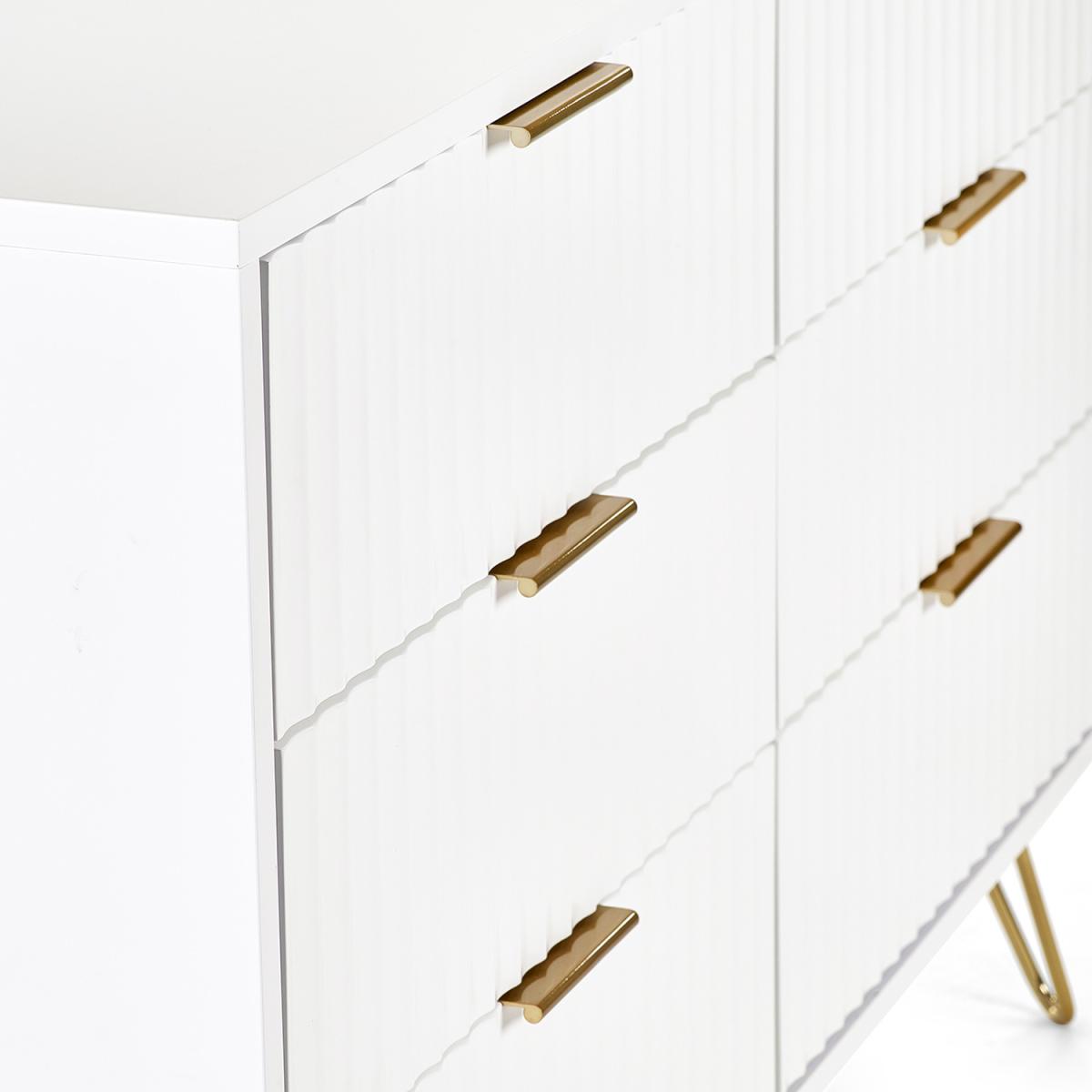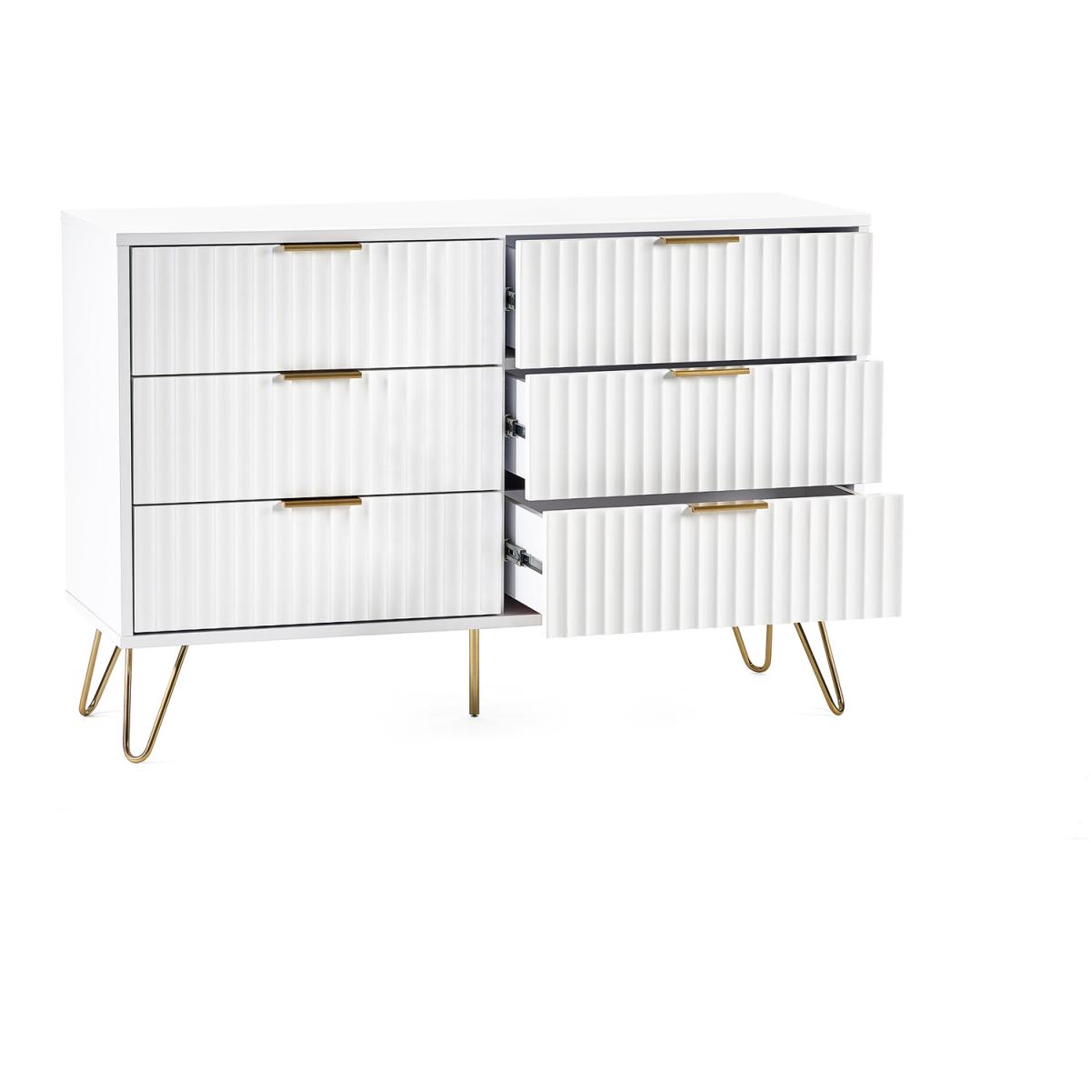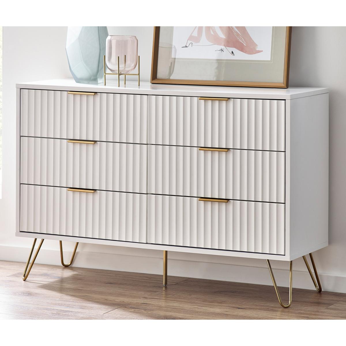 I’m a fan of the Murano chest for its clean lines, subtle fluted detailing and slim brass legs - it adds a touch of mid-century modern without overwhelming the room. Its bright white finish makes it versatile, sitting equally well in a Scandi-inspired bedroom or a contemporary living area where you need extra storage but still want to keep things light and airy. For styling, keep the top simple: a sculptural vase or a small cluster of ceramics plus a round mirror to bounce light. Tuck baskets or woven trays in the drawers for better organisation, and pair it with soft pastels or muted greys on the walls to let the chest really stand out.