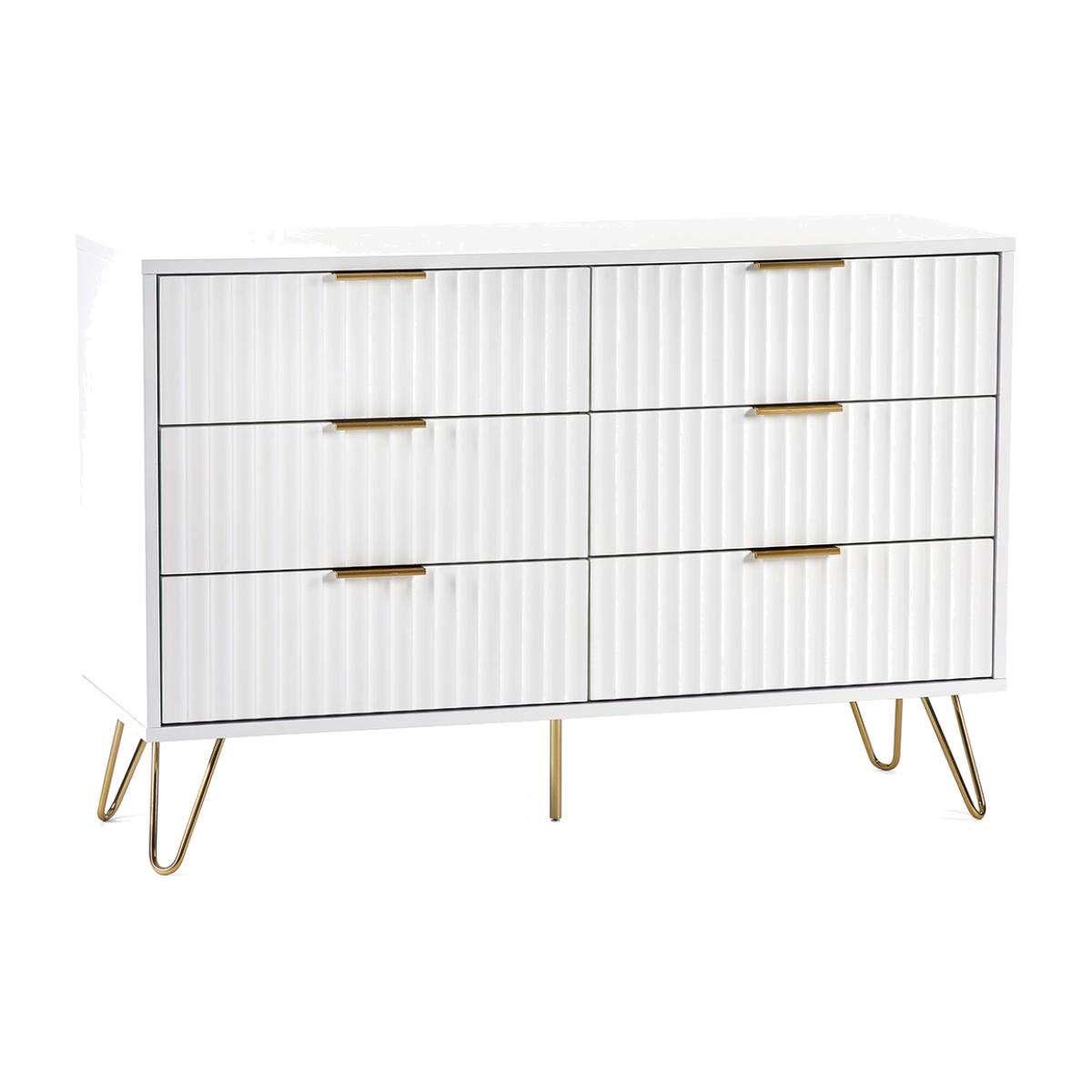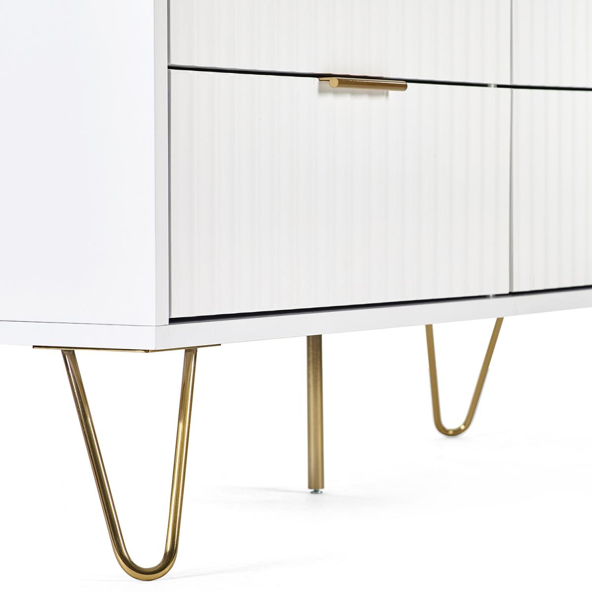 Sculpted fronts are a look that you do NOT want to miss out on. Murano is inspired by chic design the brushed gold accents promote a high-end aesthetic that is on-trend but also perfect for various interior styles. How about pairing this collection with velvet sofas or bed to create the perfect feel for your home This collection includes white finished bedroom pieces, and black finished living.