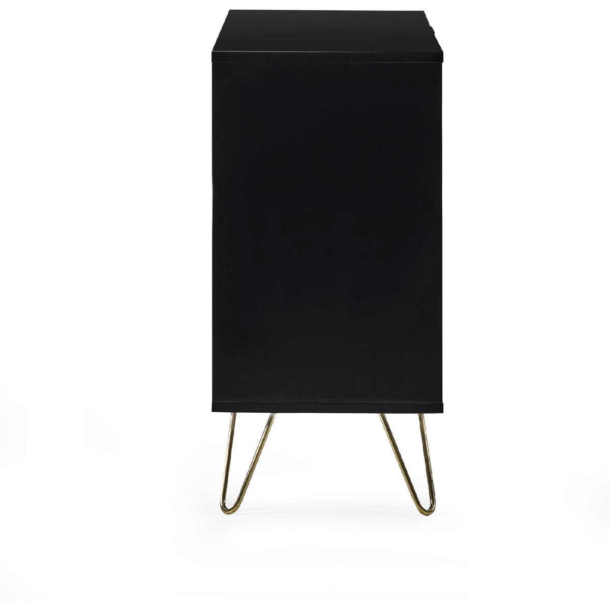 I’m a big fan of the Murano sideboard in black because its slim profile and fluted doors add texture without bulk, and the gold hairpin legs inject just the right amount of warmth. It slips easily into modern, Scandi-inspired or muted Art Deco schemes and can double as a media console or hall-way storage. Keep styling simple: a low ceramic vase with fresh greenery, a small stack of design books and a round wall mirror above will balance its clean lines. Inside, use baskets or dividers to corral tableware, board games or office supplies and keep the top tidy.