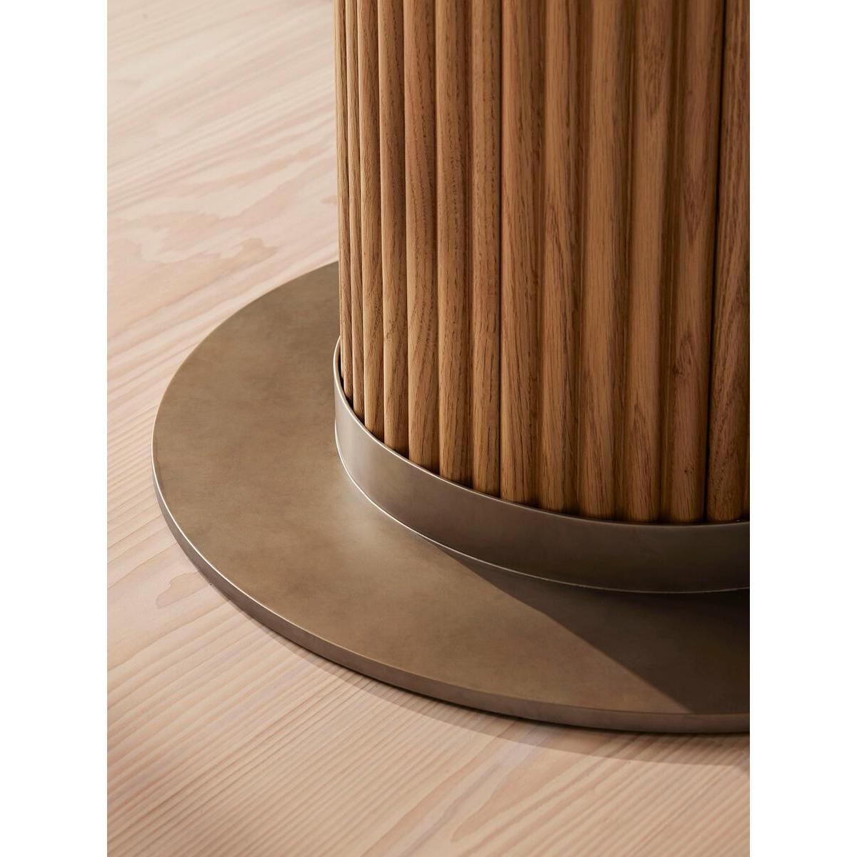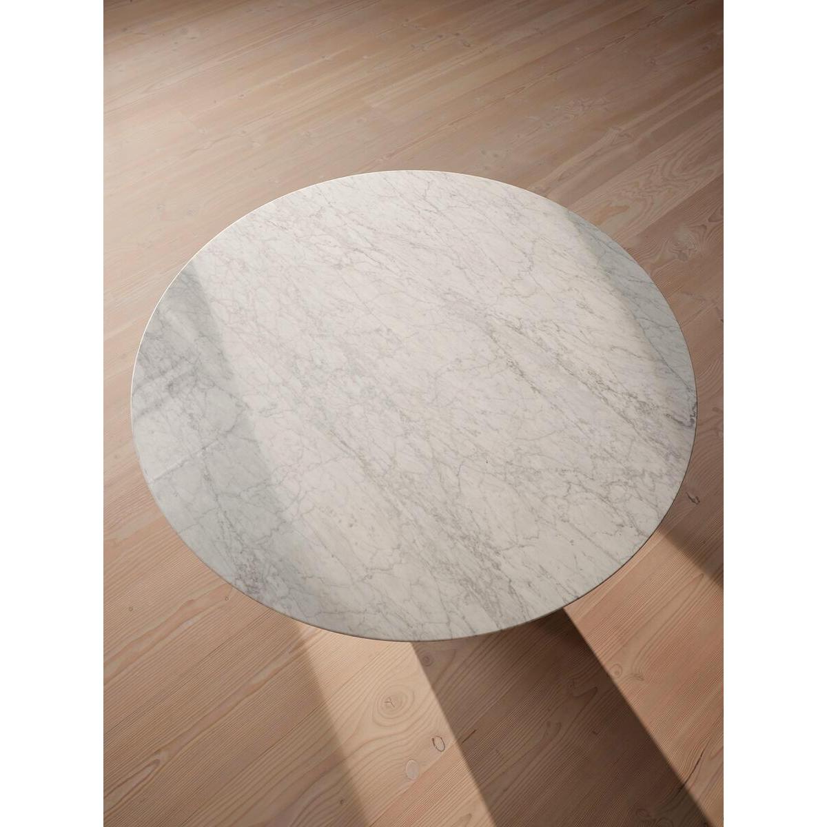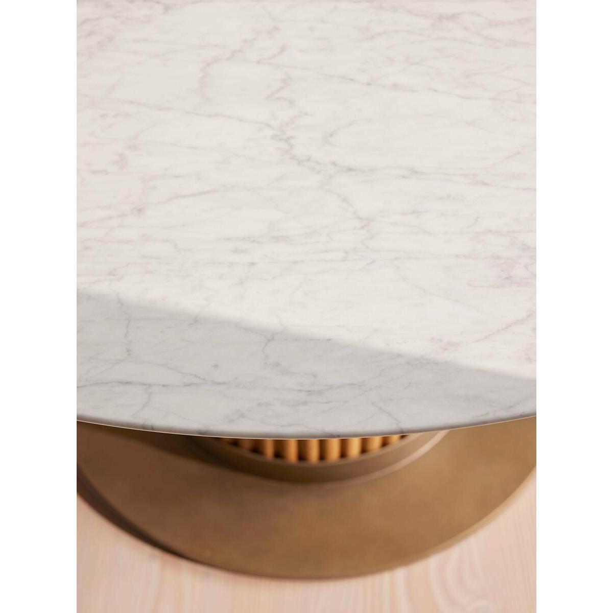 I’m a fan of how the crisp Carrara top sits lightly on that fluted timber column - it feels both refined and inviting. Its neutral palette and clean silhouette work particularly well in contemporary, Scandi-inspired or pared-back modern schemes, bringing a touch of luxury without overpowering the room. For styling, mix in mid-century or woven-seat dining chairs to introduce texture, then ground the table with a low-pile, natural-fibre rug. Keep your centrepiece simple - perhaps a single sculptural vase or shallow ceramic bowl - and add slim linen placemats or a muted runner so the marble surface remains the real star.