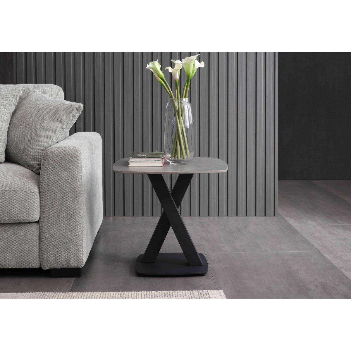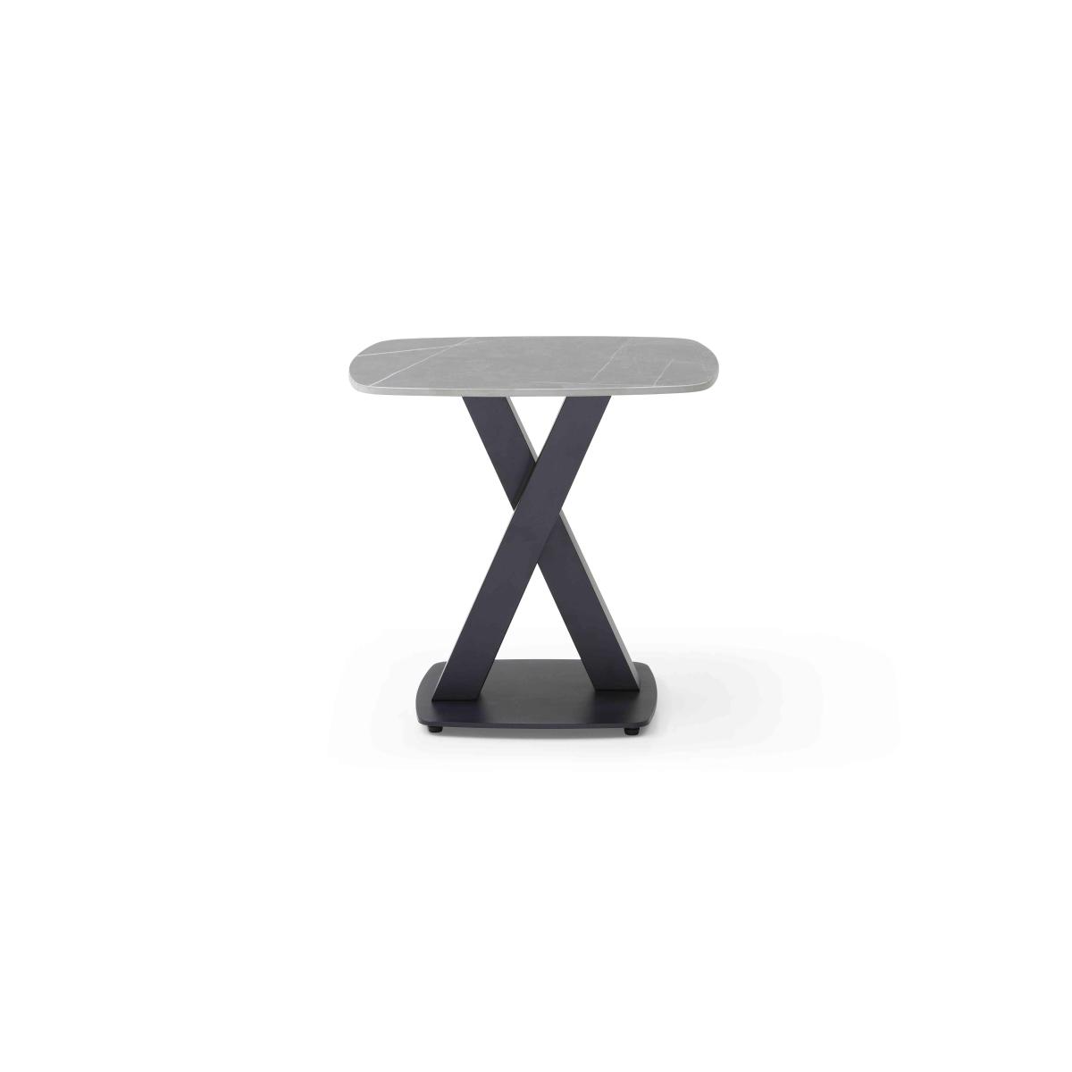 Combining metal with ceramic and geometric lines with soft curves, Murcia delivers the elegant side of industrial style. The bolder elements – like the handcrafted dining table’s black metal X-shaped base and the dining chair’s metal legs – are refined rather than rustic. And the ceramic table top has smooth curves and a beautiful pattern that continues seamlessly even when the table is extended. The collection also includes dining sets, dining chairs and bar stools, so whether you have a formal dining room or a bar table in your kitchen, the Murcia range can transform your space into something quite special. Only at Furniture Village. This stylish lamp table commands attention thanks to its beautiful matt ceramic top and that bold metal X-shaped base. Why you'll love it Cool modern design meets elegant industrial style. Lamp table has a boat-shaped ceramic top with a matt finish. Black metal X-shaped base is set on a stylishly slender plinth. Very family-friendly – ceramic top is heatproof, and scratch- and chip-resistant. Handcrafted. Exclusively at Furniture Village. This lamp table is part of our Murcia range. What you need to know 12 mm ceramic top. We recommend using coasters and placemats at all times. Easy to care for. Simply wipe with a clean damp cloth. Shop our Murcia range for dining sets, dining chairs and more.
