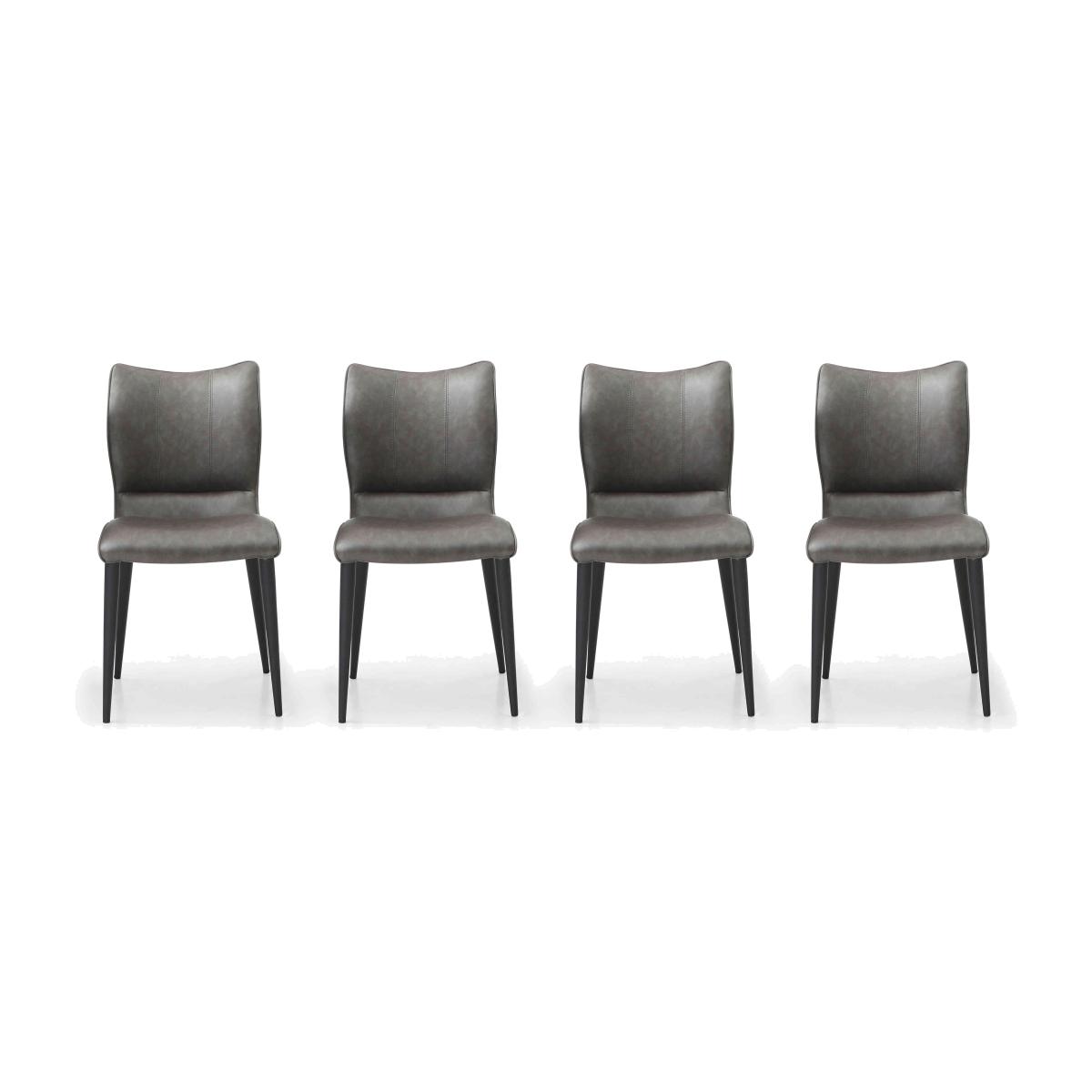 Combining metal with ceramic and geometric lines with soft curves, Murcia delivers the elegant side of industrial style. The bolder elements – like the handcrafted dining table’s black metal X-shaped base and the dining chair’s metal legs – are refined rather than rustic. And the ceramic table top has smooth curves and a beautiful pattern that continues seamlessly even when the table is extended. The collection also includes dining sets, dining chairs and bar stools, so whether you have a formal dining room or a bar table in your kitchen, the Murcia range can transform your space into something quite special. Only at Furniture Village. Cool style meets ergonomic industrial design in this set of four stylish dining chairs, part of our exclusive Murcia collection. Why you'll love it Cool modern design meets elegant industrial style. Ergonomic curved seats guarantee dining comfort. Upholstered in an antiqued grey fabric with stitching detail. Matt black powder-coated metal legs. Also available in sets of 2 and 6 dining chairs. Exclusively at Furniture Village. This set of 4 dining chairs is part of our Murcia range. What you need to know Metal frame and legs. Cushioned with foam. Pair with the Murcia dining table or enjoy them in a Murcia dining set.