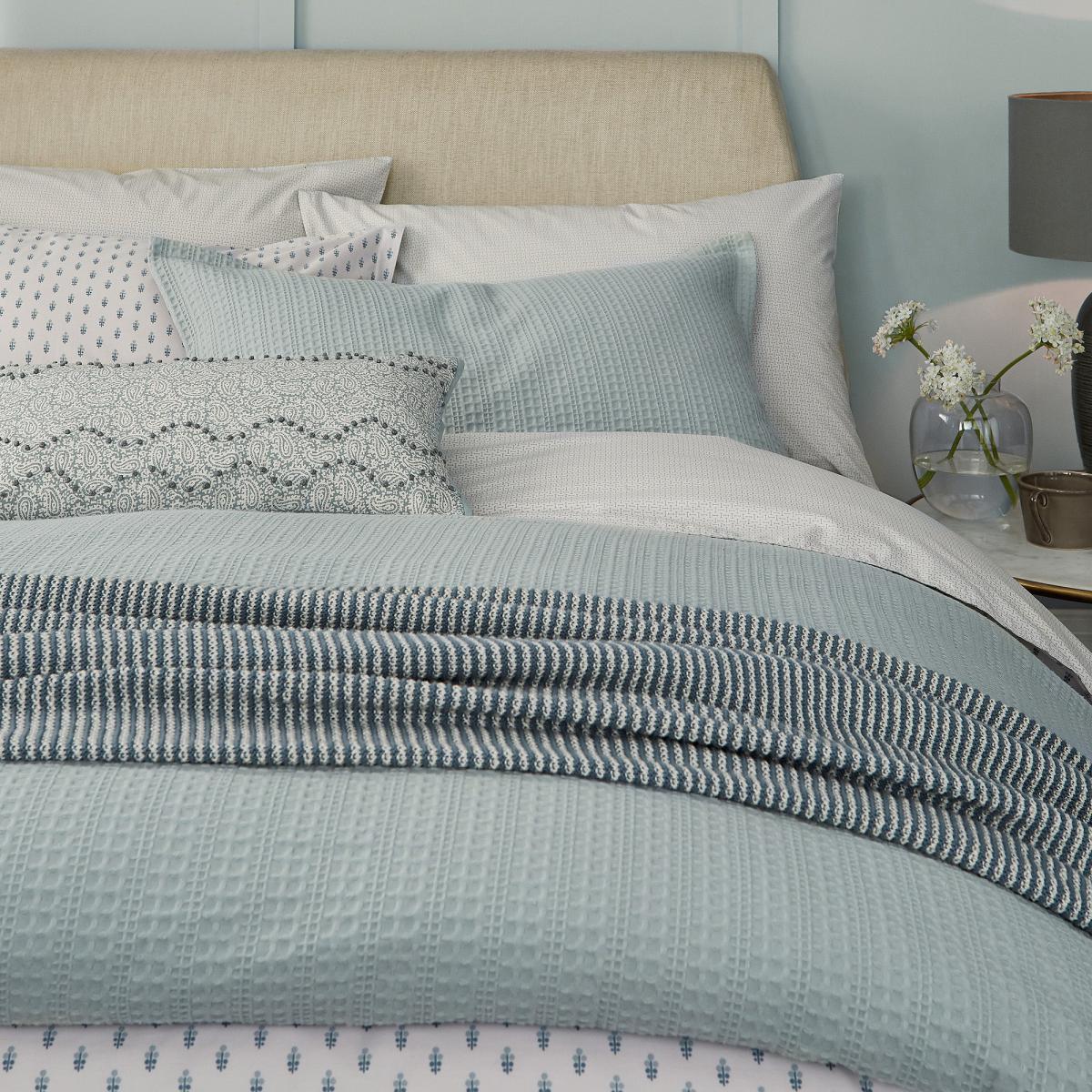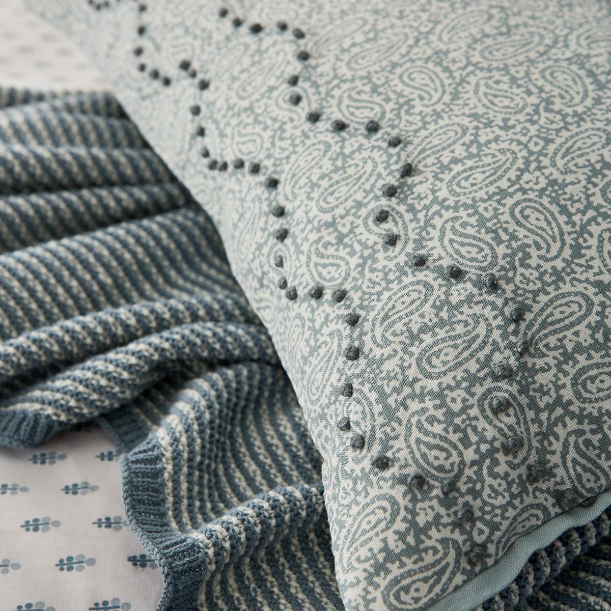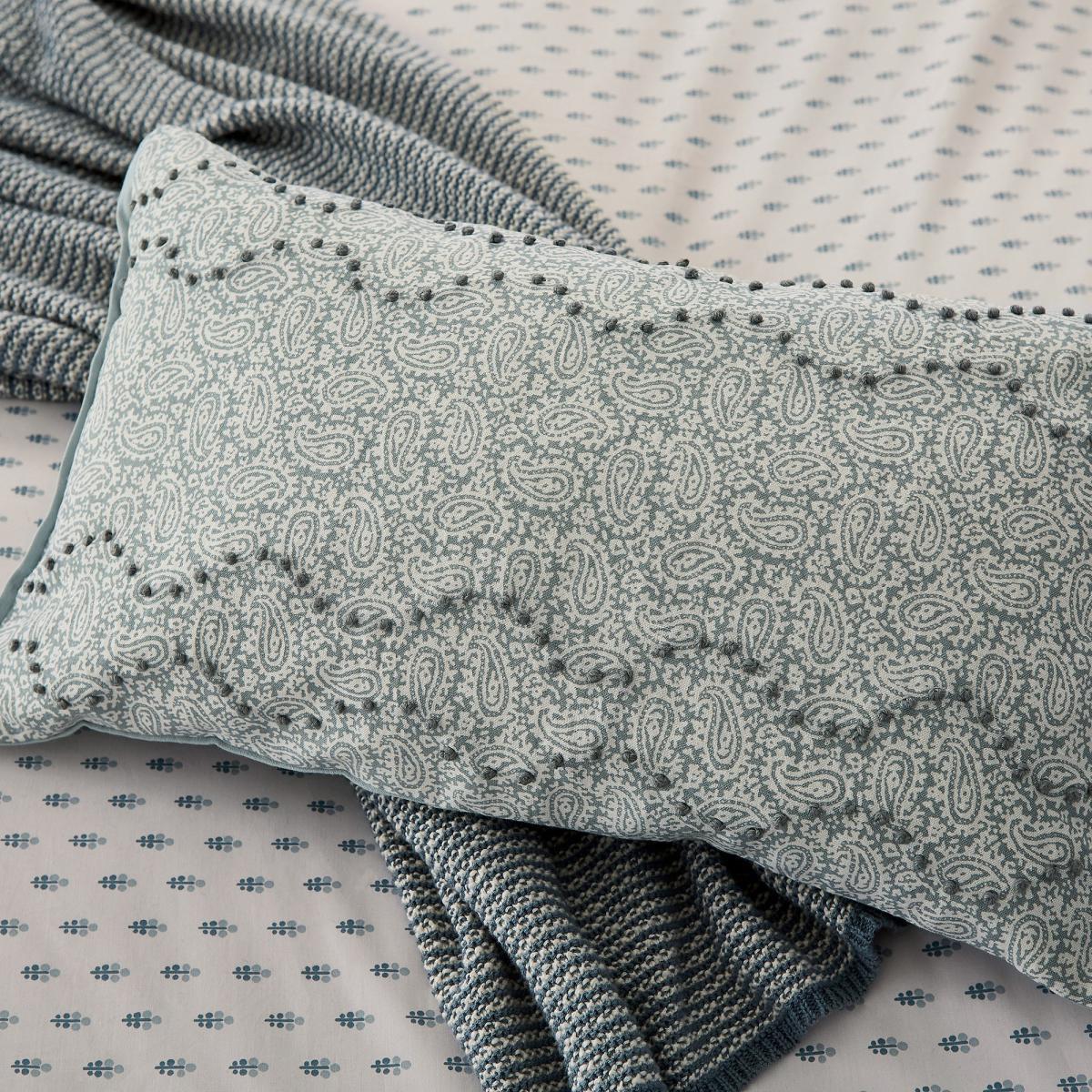 Perfect for adding a stylish touch to your bedroom this cushion has a beautifully intricately design in a stunning lough green colourway. The cushion front displays an all-over paisley print with dotted embroidery detailing. Made from a linen, cotton mix with a sumptuous feather filling.