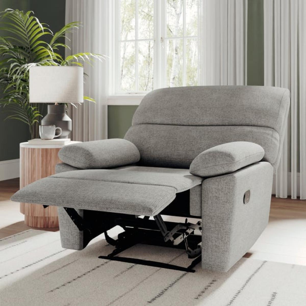 * Manual recline function * Soft chenille fabric * Pillow‑top arms * High back support * Firm foam‑and‑fibre cushions Meet the Murphy Reclining armchair - your personal relaxing spot, with a smooth manual recline for feet‑up comfort on demand. The soft chenille finish and supportive high back make it ideal for long reads and box‑set binges. Pillow‑top arms add a cushioned feel, while firm foam‑and‑fibre cushions provide durable support. A neat, modern silhouette that works in any corner.