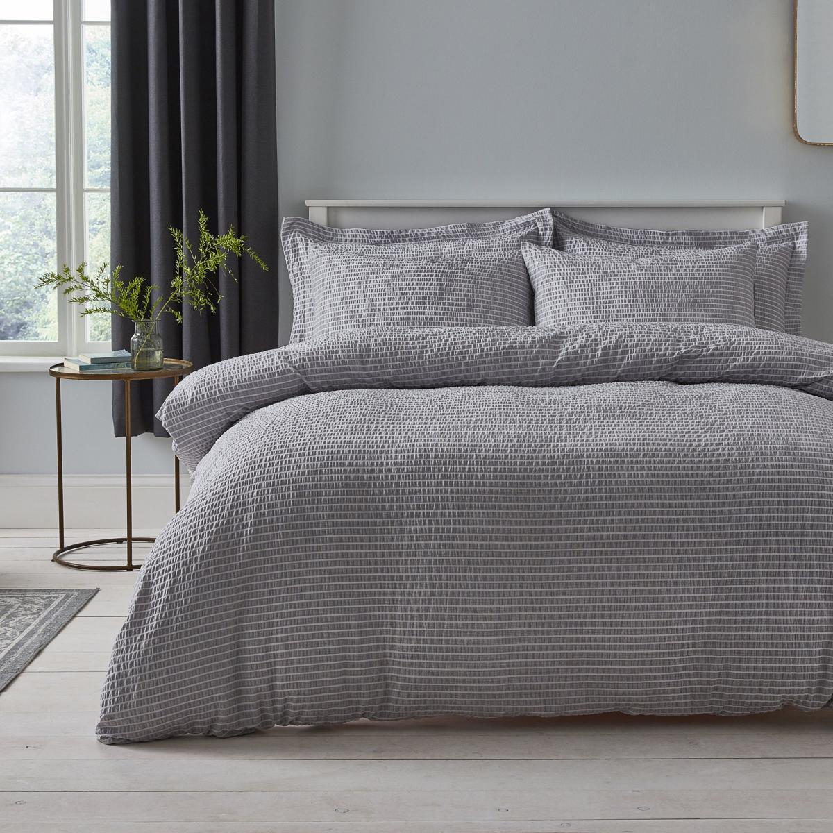 Murray Grey Seersucker Duvet Cover and Pillowcase Set Grey
