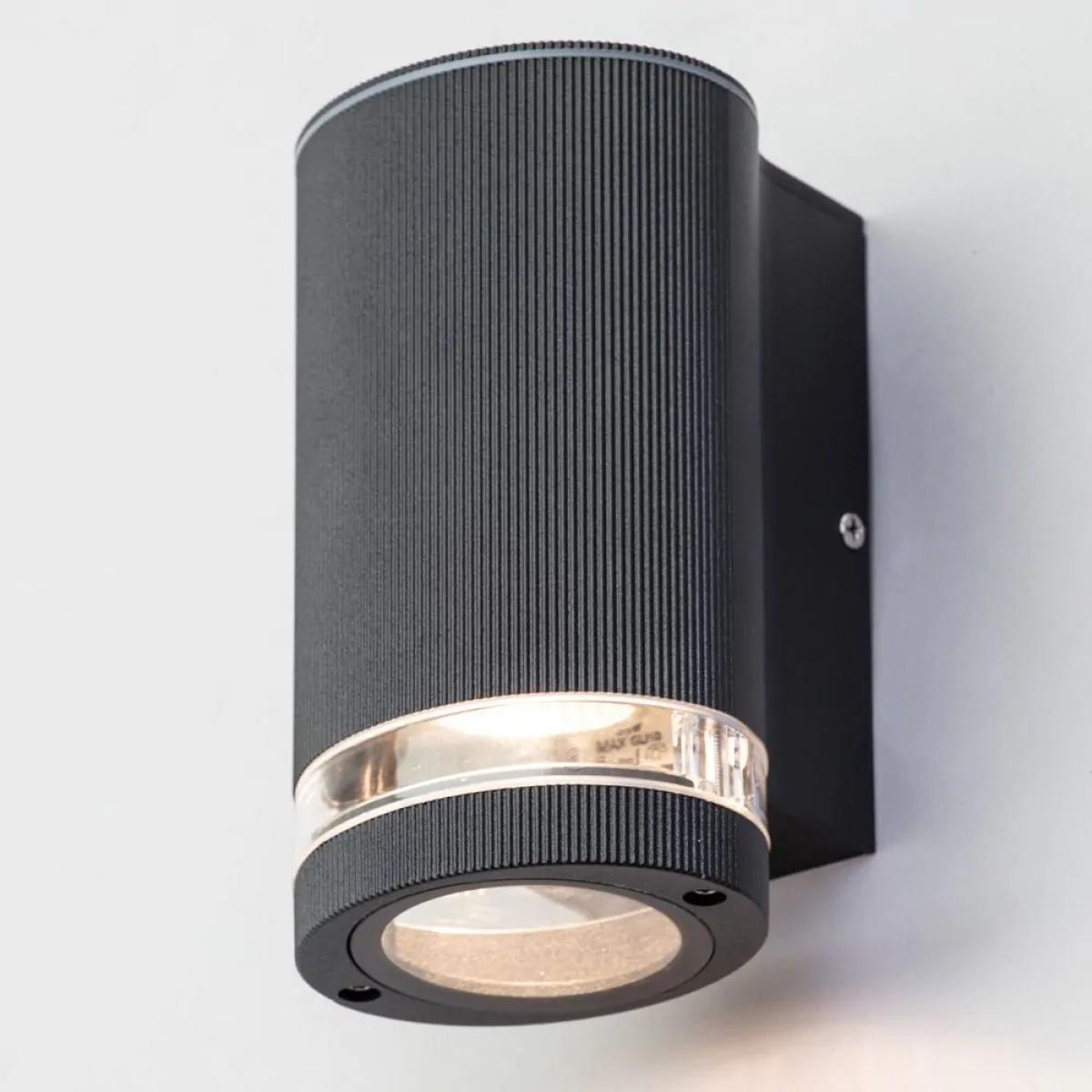 I love this wall light for its sleek, modern look that complements a variety of outdoor styles, from contemporary to minimalist. Its black, cylindrical design is versatile and unobtrusive, making it perfect for highlighting entrances, pathways, or even garden seating areas. Practical styling tips would include pairing it with other black or matte hardware for a cohesive look or using it to create subtle accent lighting on textured walls for added dimension. It works particularly well in urban or industrial-inspired exteriors but can also add a contemporary edge to more traditional settings when paired with natural materials. Keep in mind, its clean lines and unobtrusive profile mean it won’t overpower your overall landscape design, making it a smart choice for functional yet stylish outdoor lighting.