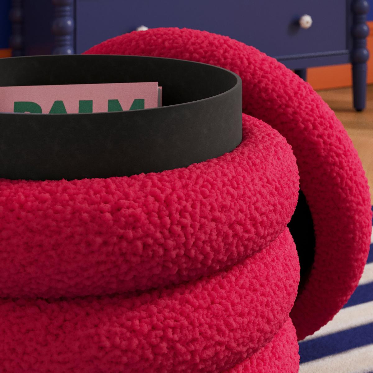 I love this footstool for its playful yet plush design, making it a real statement piece in both contemporary and eclectic interiors. Its sherpa fabric brings a cosy, tactile element that works well in lived-in family spaces or relaxed lounges, offering both style and practicality. It’s versatile enough to double as extra seating or a footrest, and its bold colour can be a focal point or a complement to more neutral palettes. For styling tips, try grouping it with layered textiles like textured rugs or velvet cushions to emphasise its softness, or position it near a statement armchair to create a cosy corner. It’s perfect for injecting a pop of colour and personality into your scheme.