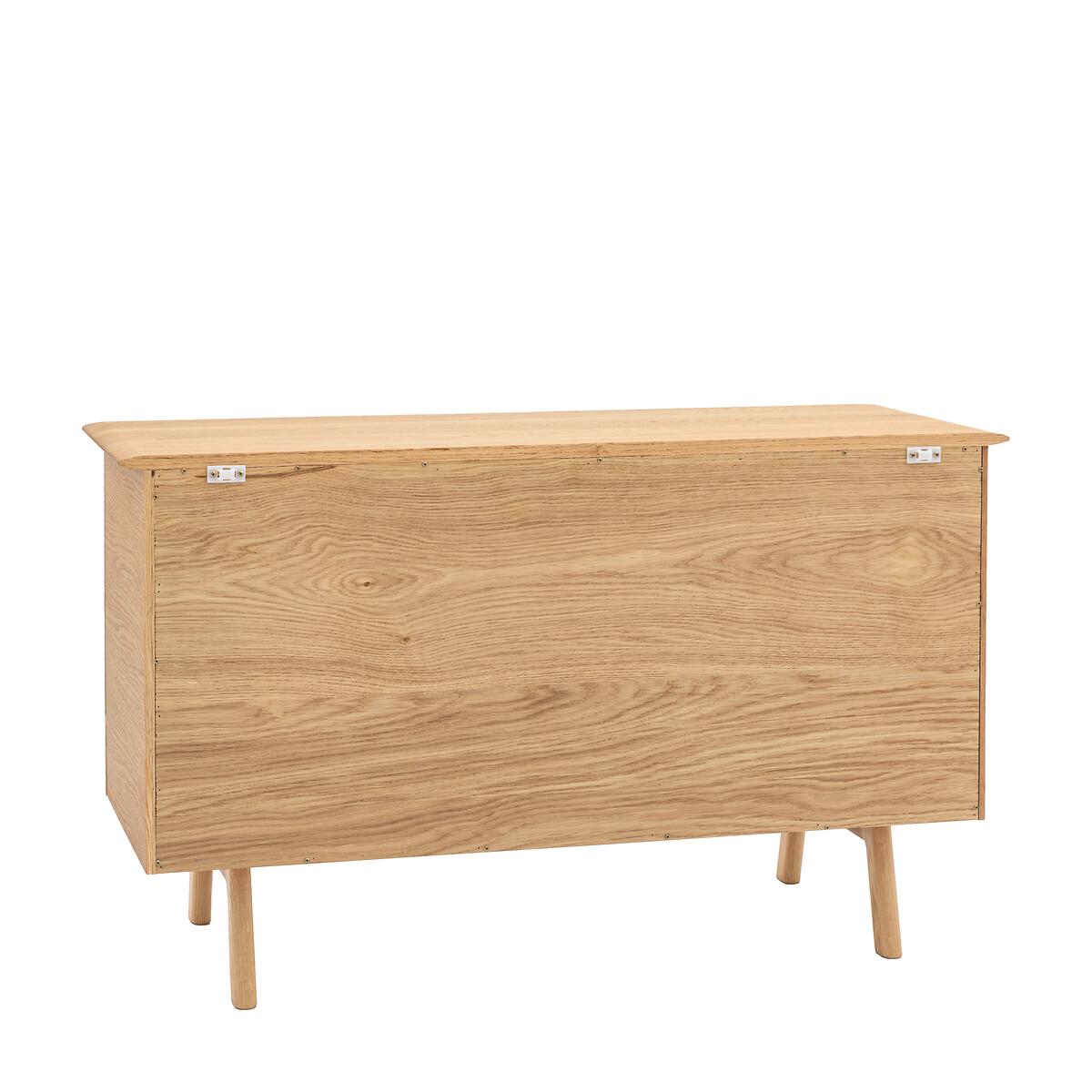 Minimalist design meets everyday practicality with this 2-door sideboard from the Murwara collection. Inspired by mid-century modern style, it combines clean lines, tapered legs, and a warm oak finish to create a statement piece that’s as functional as it is stylish. Behind the spacious doors, you’ll find plenty of room to store everything from dinnerware to living room essentials—keeping your space clutter-free with ease. Whether styled in the dining room, living room, or hallway, this modern sideboard blends seamlessly with any interior, bringing effortless elegance to your home. Product Details:• Solid oak• 2 doors• Fully finished back• Adjustable shelves• Partial assembly required• 12 months manufacturers warranty. Product Composition - Solid Oak / MDFProduct Dimensions - 45 cm x 116 cm x 70 cm, Weight - 36 kg Clearance to floor 18 cm Package Dimensions - 122 cm x 77 cm x 51 cm, Weight - 41 kg. This product will be dispatched by one of our trusted suppliers. You’ll be contacted by their selected courier about your delivery. Please note: this product cannot be delivered to all Offshore Islands, Northern Ireland or Republic of Ireland.