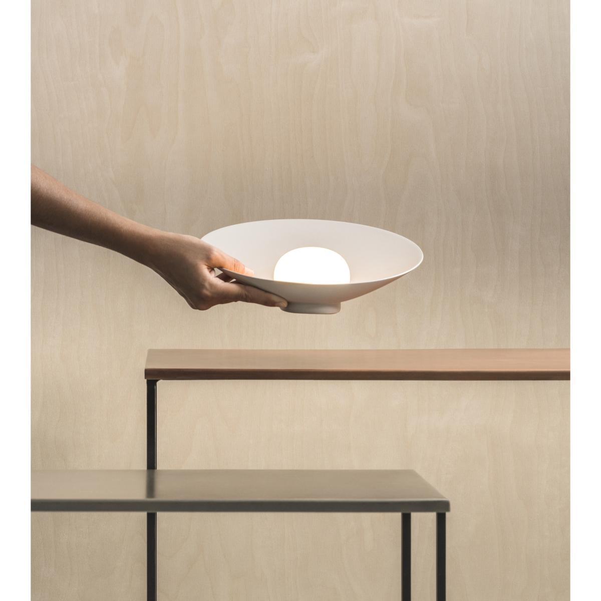 Delicate, organic and poetic, the Musa collection will win you over straight away! Created by the Swedish studio Note Design, this series of light fixtures includes wall lamps as well as table lamps fixed or equipped with a rechargeable battery for a mobile version. This collection appeals with its elegance, its fine design as well as its harmonious curves inspired by nature. This Musa flat table lamp features an opaline blown glass diffuser in a beautiful lacquered aluminium base. It produces a truly incredible play of light: capturing the light emitted by the diffuser, the base then delivers soft, warm lighting that fills your room. Very trendy, the Musa comes in salmon or white with beautiful matte finishes. This wireless LED lamp is recharged on the mains (charger and battery included).