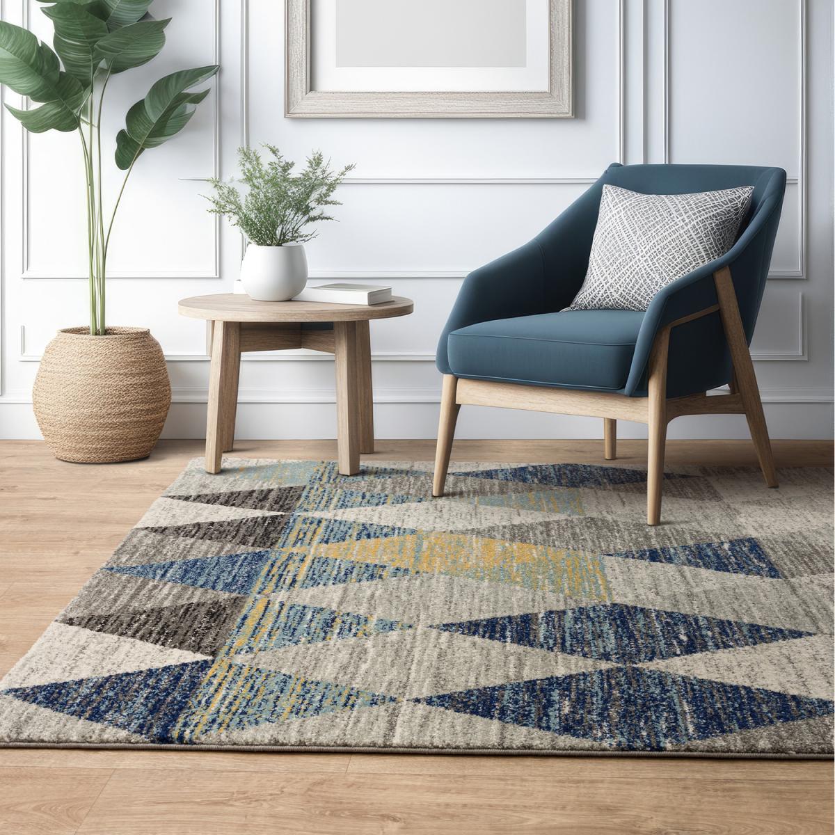 The Muse Harlequin Blue Geometric rug is a bold choice that can really bring a contemporary edge to a living space. I love how its eye-catching pattern and varying shades of blue add visual interest without overwhelming a room. It works well in modern or minimal interiors, especially when paired with neutral furniture, allowing the rug to be a statement piece. For practical styling, I recommend layering it under a simple coffee table or placing it in a cosy corner with a statement armchair, like the one pictured. To keep it looking fresh, avoid placing it in high-traffic areas prone to stains, and consider using a rug pad for added stability and comfort. It’s a versatile piece that combines style and practicality, perfect for injecting colour and pattern into a neutral scheme.