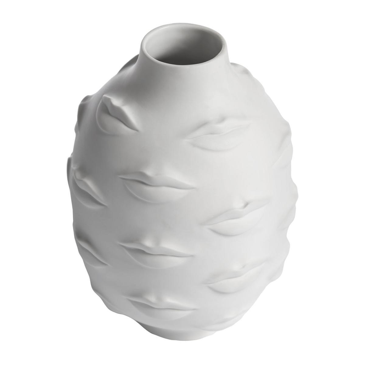 Inspired by Gala, wife and muse of Salvador Dali. Crafted from unglazed matte porcelain to create an ethereal vibe. Each prototype starts its journey in our Soho studio, where Jonathan throws the models for the Muse vessels and then substitutes our signature geometric relief patterns with body parts—faces, breasts, lips—to create a surreal style.
