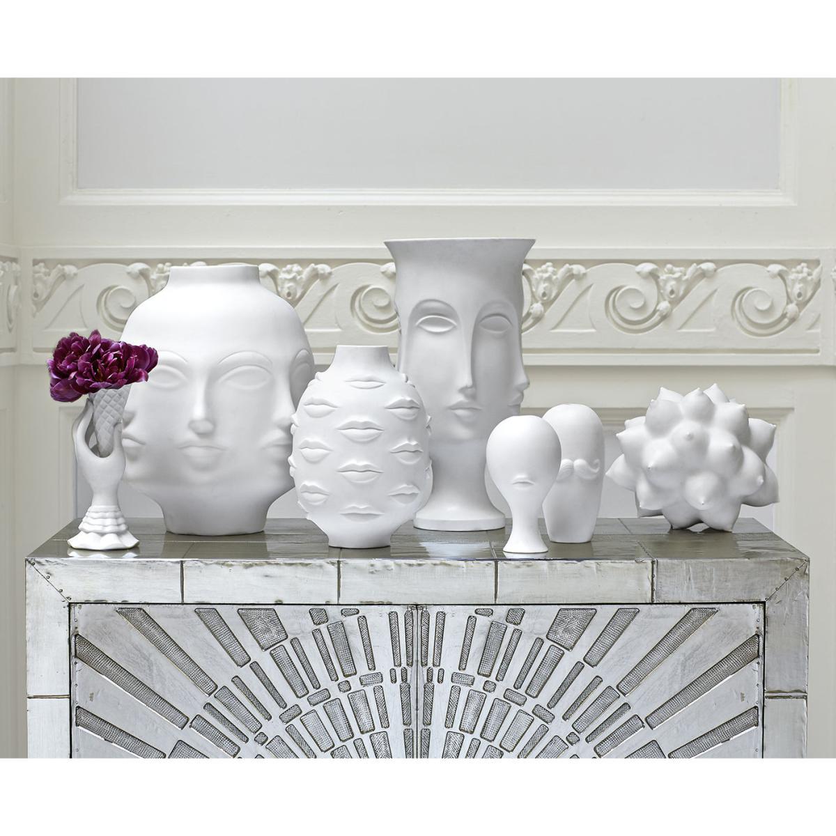 I love the Muse round gala vase for its playful, contemporary vibe, making it a great statement piece in modern interiors. Its clean white porcelain finish allows it to seamlessly blend into minimalist, Scandinavian, or eclectic spaces, adding texture and visual interest. I would recommend pairing it with greenery or dried flowers to highlight its sculptural design or keeping it empty on a mantle or sideboard for a bold, graphic touch. Taller than most vases, it works well as a standalone feature or grouped with other decorative objects to create a curated look. Practical styling tips include placing it at eye level on a console or shelf to showcase its unique face motif, while avoiding overcrowding nearby surfaces to let it stand out.