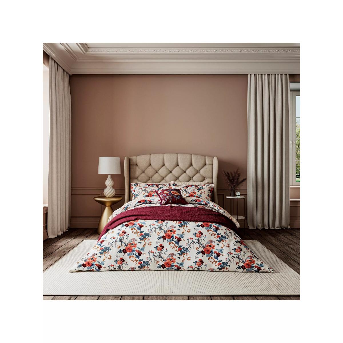 I love this throw because it adds a rich, cultural touch to both classic and contemporary interiors. The bold red hue makes it a statement piece, perfect for adding warmth and colour to a neutral sofa or armchair. It works particularly well in spaces that feature vintage or eclectic elements, bringing a touch of sophistication with its intricate chinoiserie pattern. Practical styling tips include draping it casually over a sofa or layered at the foot of a bed to bring visual interest. It's also versatile enough to pair with other textiles, like muted cushions or textured throws, for a curated, layered look.