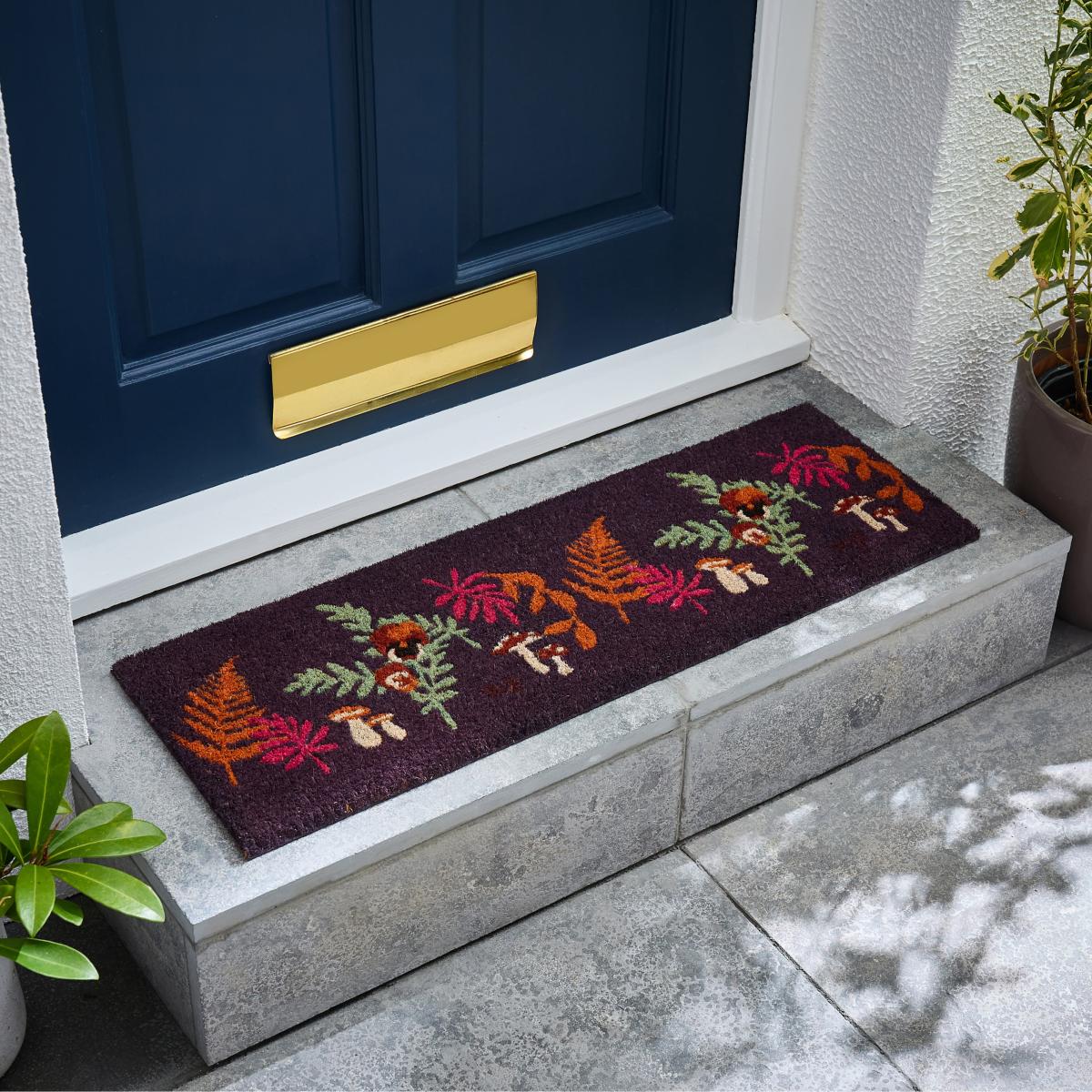 The mushroom forest doormat in purple offers a playful and colourful option for adding personality to an entranceway. I love how it introduces a vibrant, whimsical element that can work well in both contemporary and eclectic interiors. It pairs nicely with neutral or minimal schemes, providing a pop of colour without overwhelming the space. For practical styling, consider keeping surrounding accessories simple to let the doormat be the focal point, and ensure it’s well maintained to keep its fresh look. It's perfect for welcoming guests with a touch of fun while being durable enough for outdoor use.