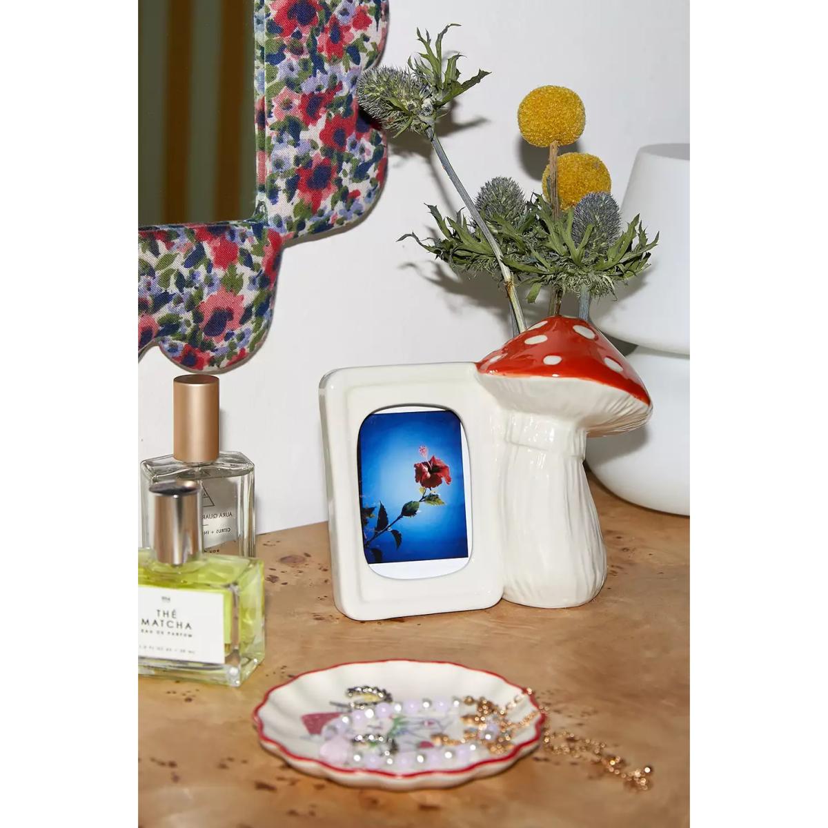 I love this little mushroom frame for its playful yet quirky charm, making it perfect for adding a pop of colour and whimsy to any space. It works particularly well in eclectic or modern interiors, where it can stand out as a fun focal point, or in a cheerful kitchenette or bedside table setup. Practical styling tips include grouping it with other small, colourful accessories or placing it alongside botanical prints or retro pieces to create a vibe that’s inviting and lively. It’s ideal for displaying your favourite Instax shots, bringing personality to shelves or side tables without taking up too much space.