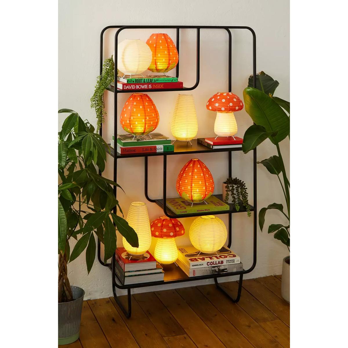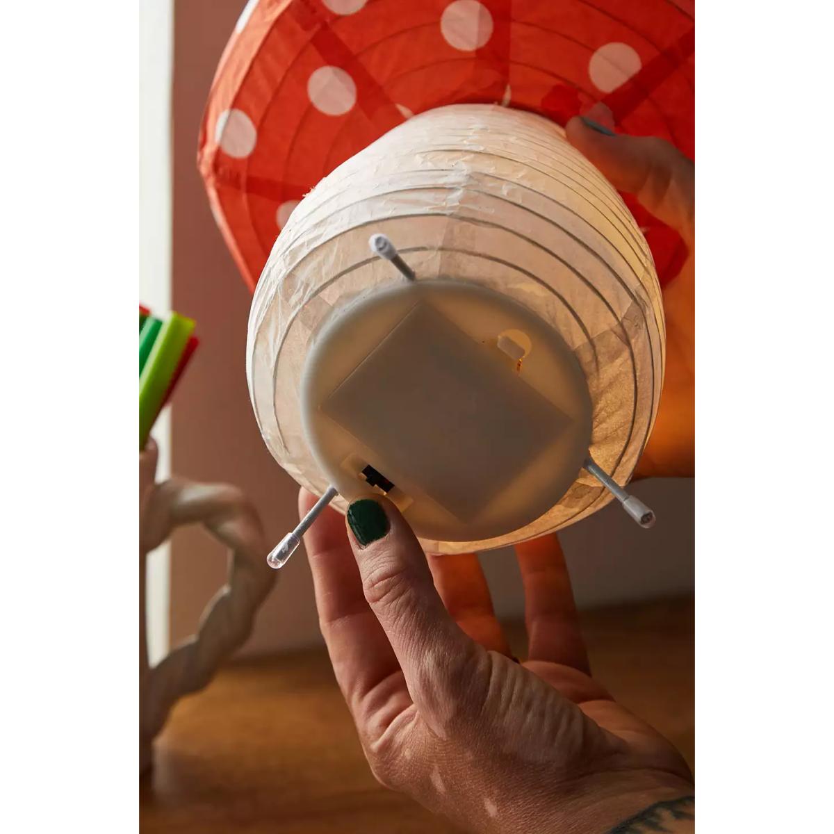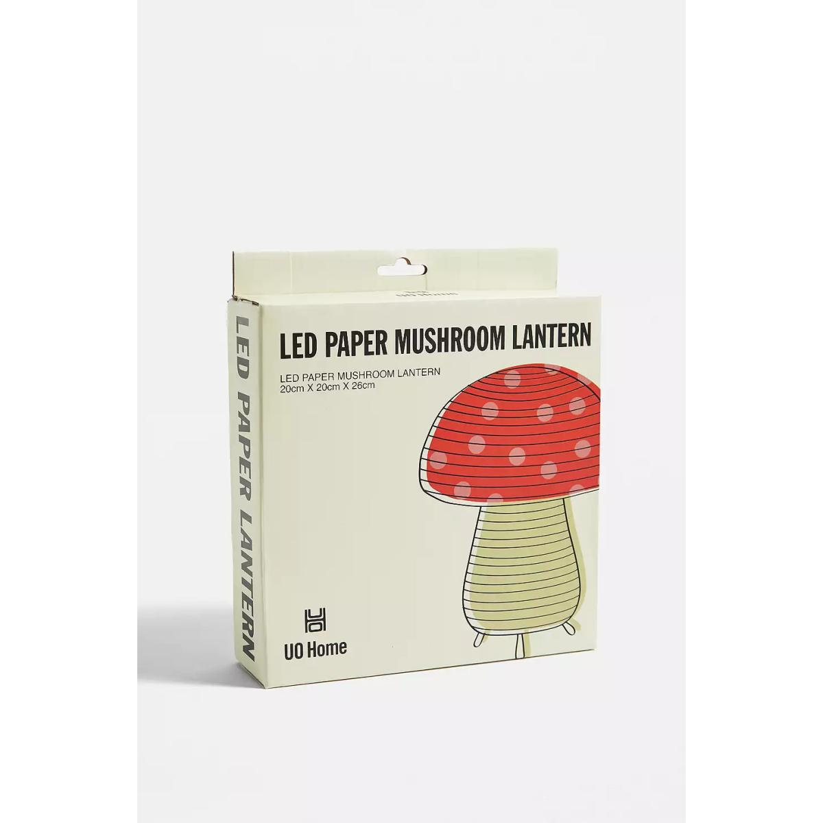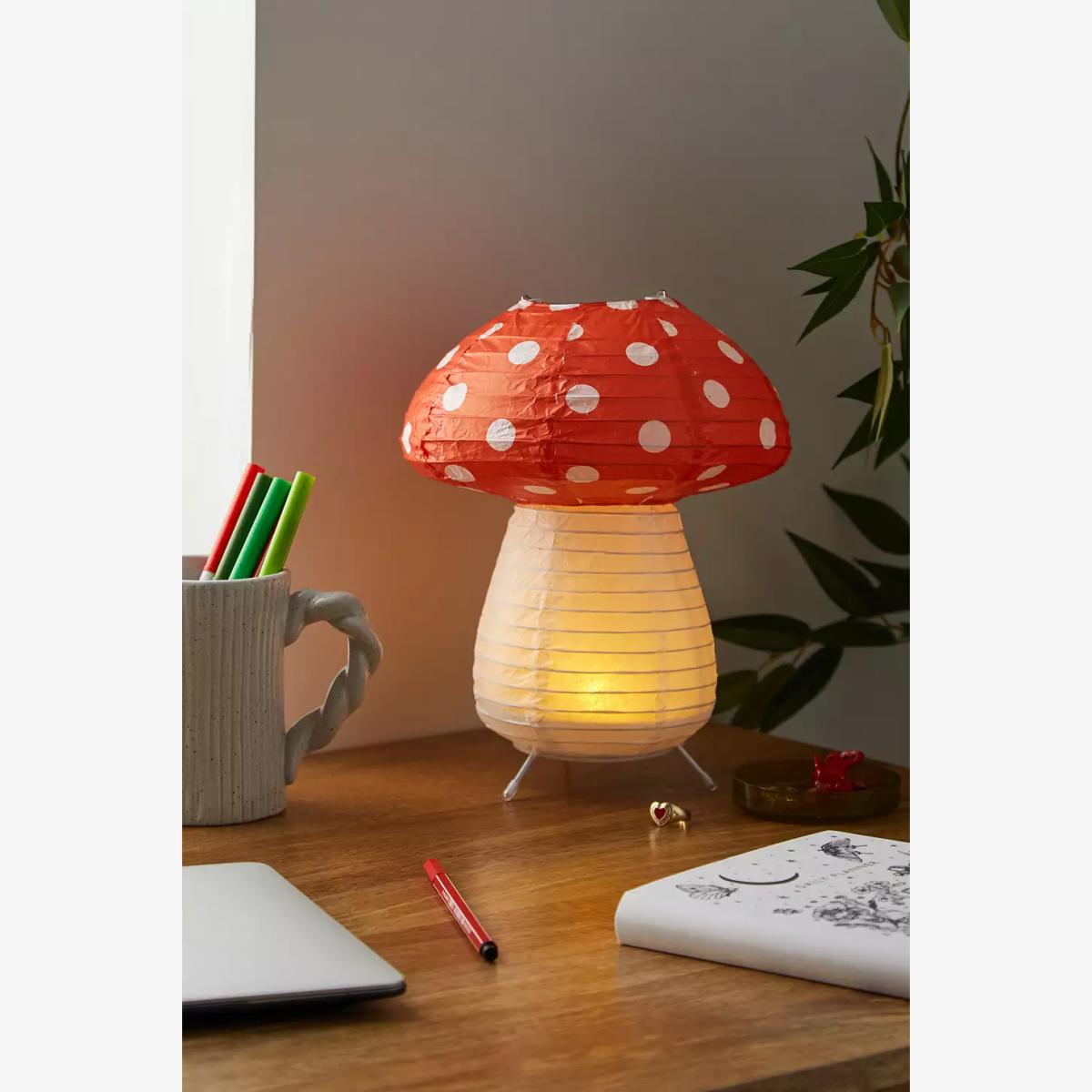 Add shroomy vibes to your space with this mushroom-shaped paper lamp. The lantern-style tabletop lamp is battery-powered for easy use wherever you want, complete with an LED bulb emitting a warm glow around your room. **Content + Care** \- Rice paper, Plastic, Iron \- Spot clean \- Requires 3 x AA batteries (not included)
