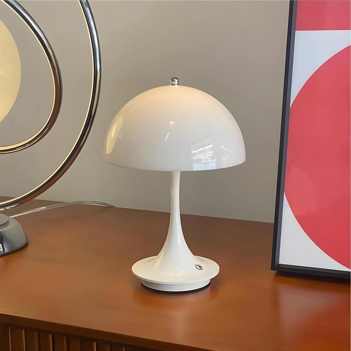Mushroom-Shaped Dimmable Table Lamp - White
