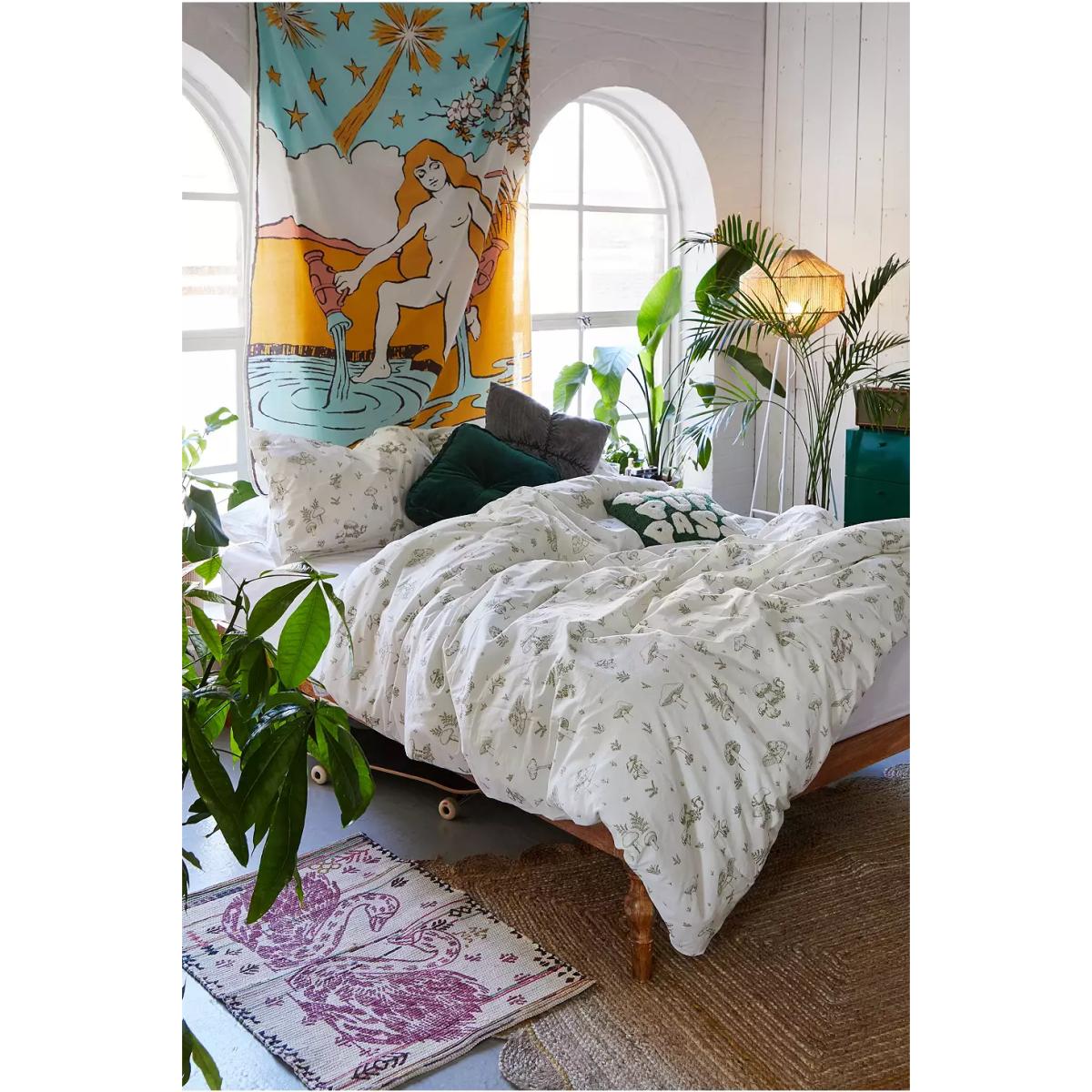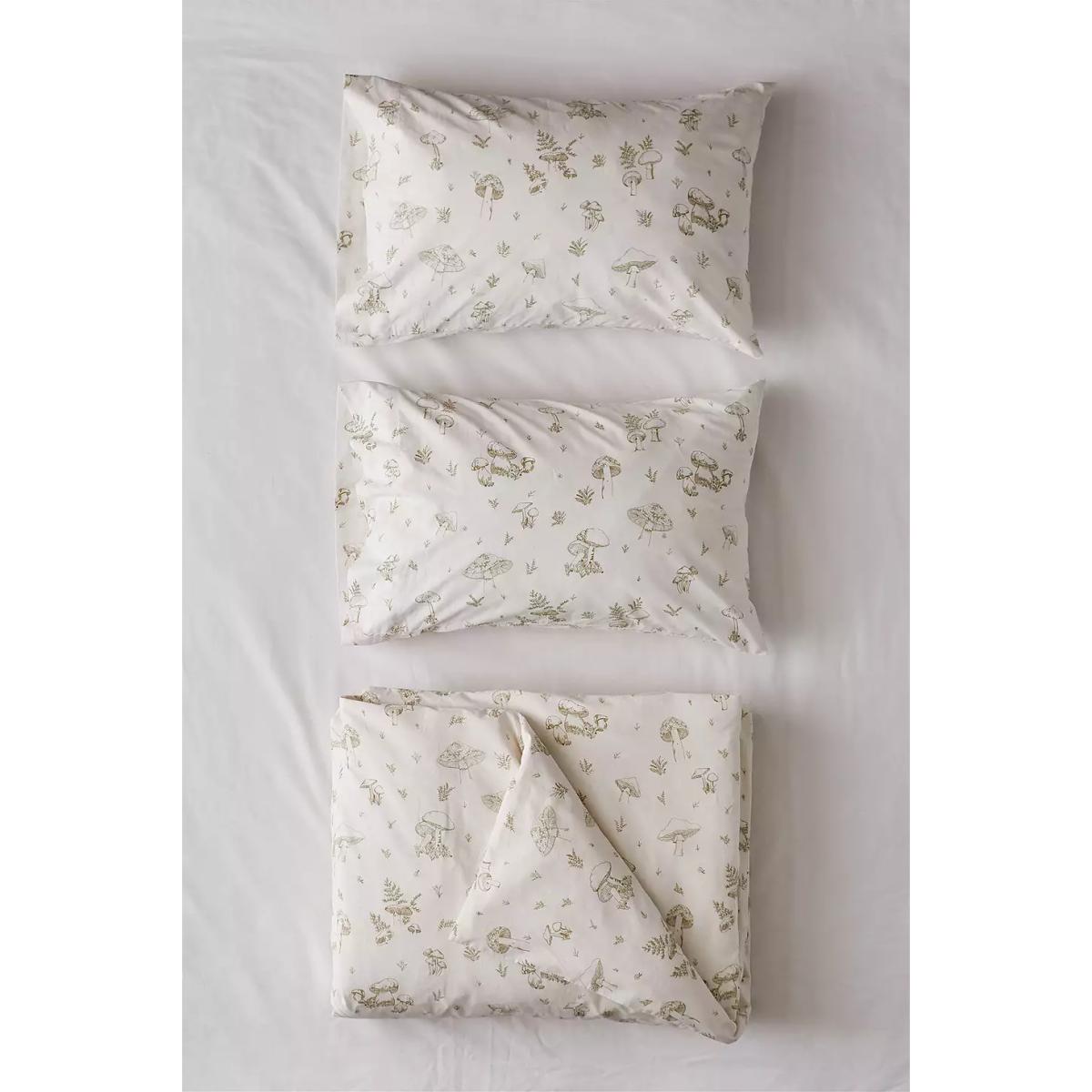Add a foraging flourish to your bedroom space with this mushroom bedding. Crafted from super soft cotton, this matching duvet and pillowcase set is complete with sketch-style mushroom motifs. **About Better Cotton** \- By choosing our cotton products, you’re supporting our investment in Better Cotton’s mission \- This product is sourced via a system of mass balance and therefore may not contain Better Cotton \- Bettercotton.org/massbalance **Content + Care** \- 100% Cotton \- Machine wash **Size** \- Single (includes 1 pillowcase): 135cm (W) x 200cm (H) \- Double (includes 2 pillowcases): 200cm (W) x 200cm (H) \- King (includes 2 pillowcases): 230cm (W) x 220cm (H) \- Pillowcase: 75cm x 50cm
