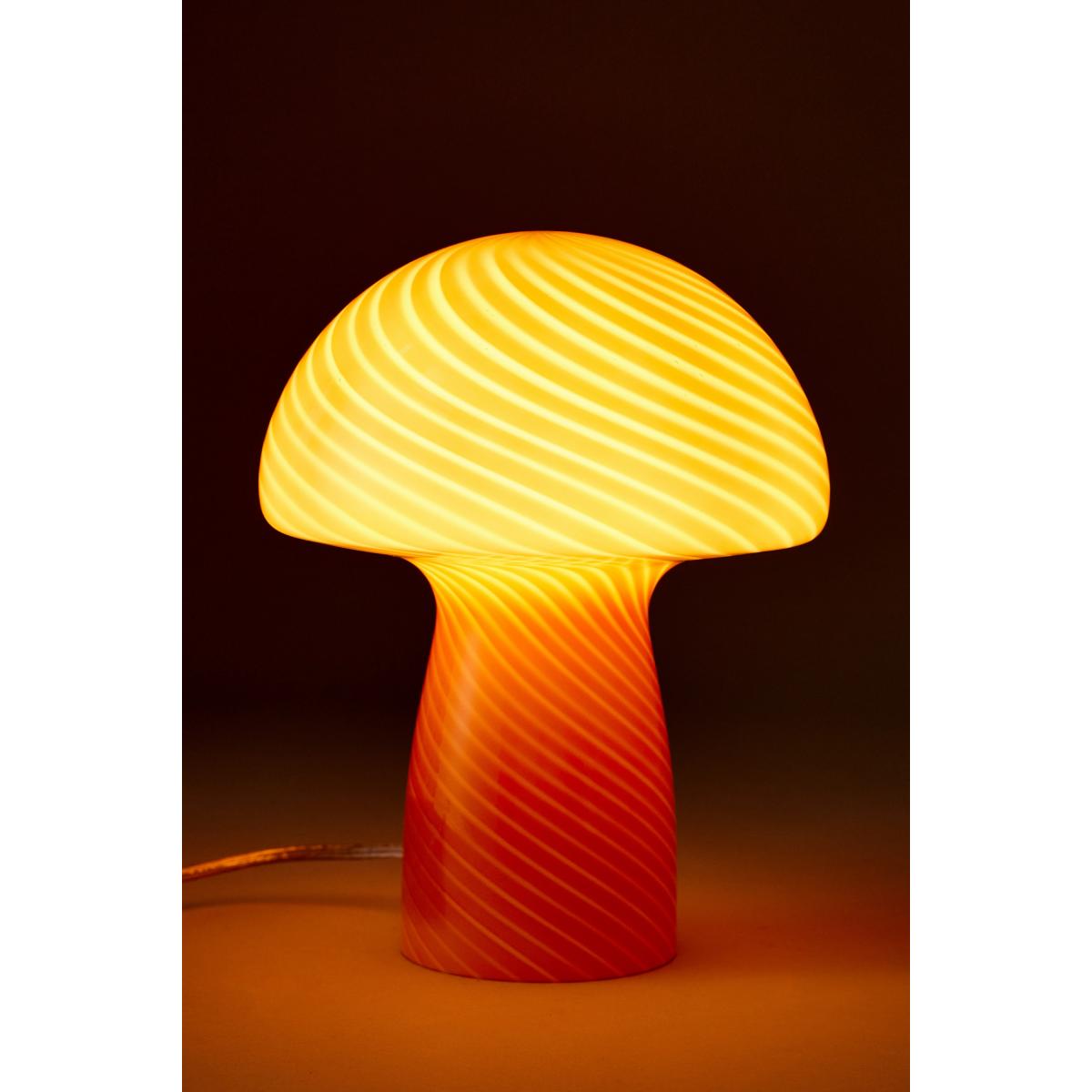 This mushroom lamp adds wonder and whimsy to your tabletop, emitting a warm, atmospheric glow. *This item is CE listed, meaning it has been tested and approved to meet the government-regulated safety standards for the UK. Use with electrical outlets of 230v or lower, as anything higher can cause fire or injury. If you're purchasing this item for use outside of the United Kingdom, employ the adapter and voltage converter suited for your country* * 100% Glass * One light socket * 40 watt max * Bulb not included * We recommend using E14 bulb * CE listed * Imported