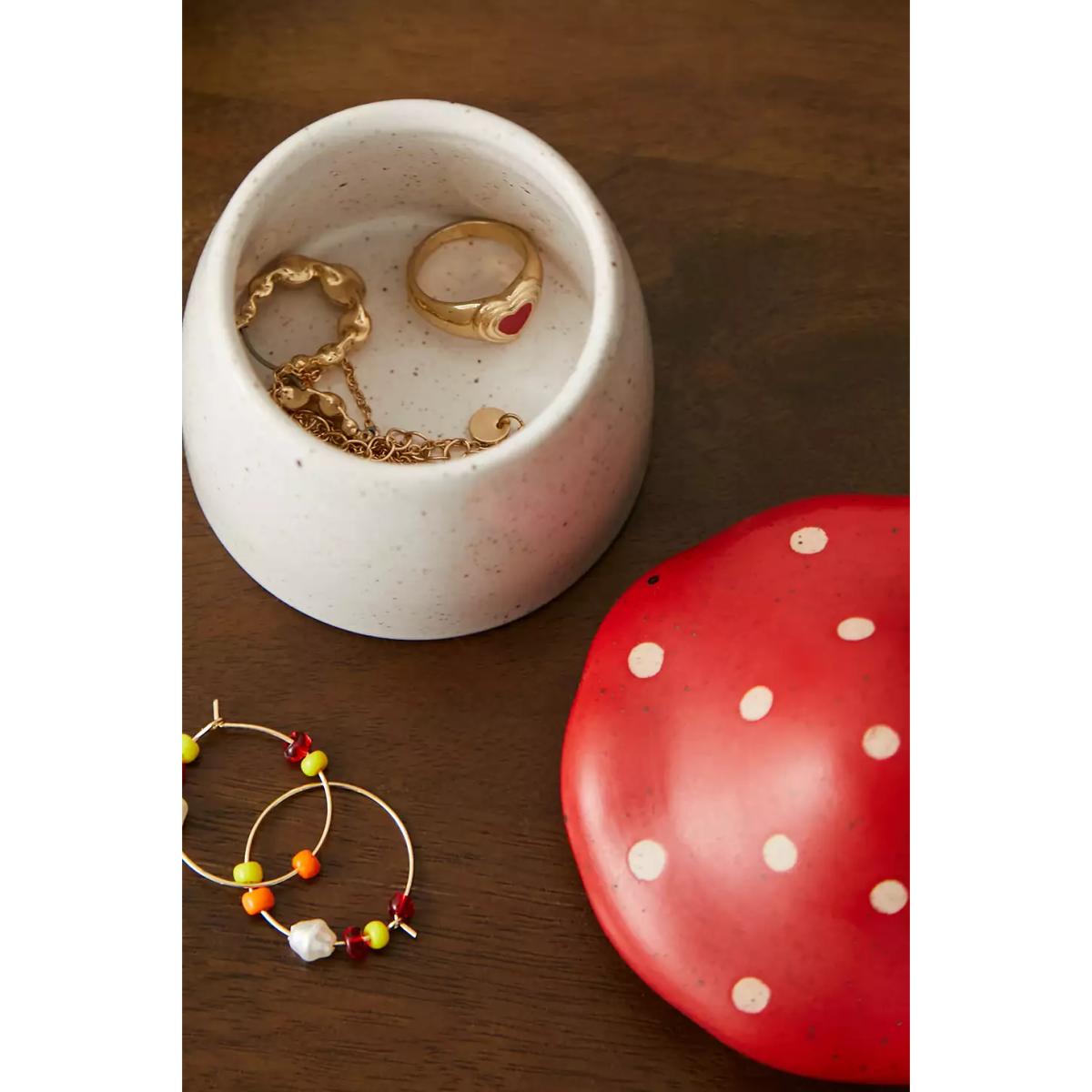 Hide any small bits and bobs in this super-cute toadstool trinket box. Featuring a removable mushroom lid and a curved edge base that's hollowed out to store mini treasures inside. **Content + Care** \- Stoneware \- Wipe clean