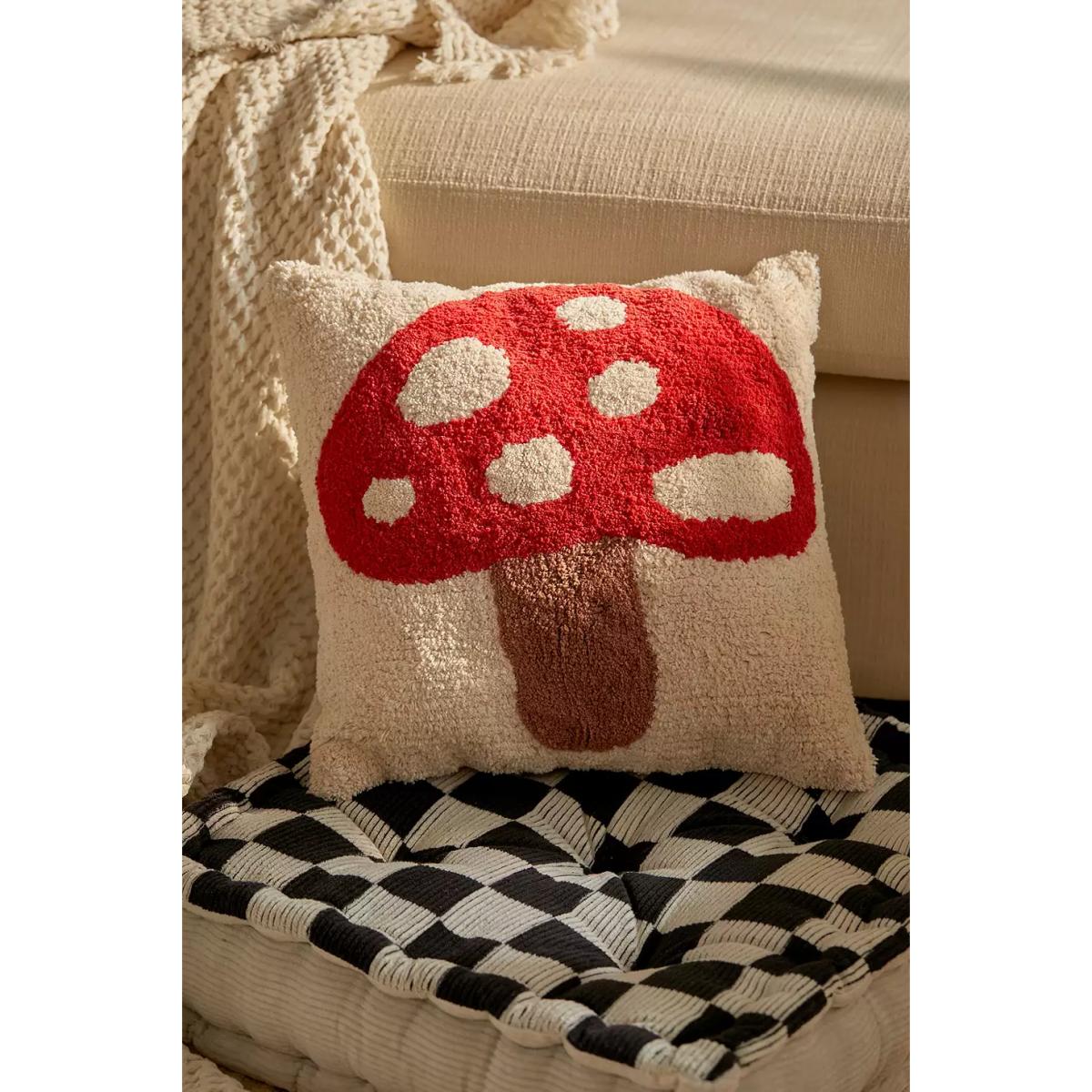 Add a cutesy throw cushion to your space with this bold mushroom design pillow. Features a tufted fabrication with a vibrant mushroom motif and a plush filled interior. **Content + Care** \- Main: 100% Cotton \- Fill: 100% Polyester \- Spot clean **Size** \- 39cm x 37cm