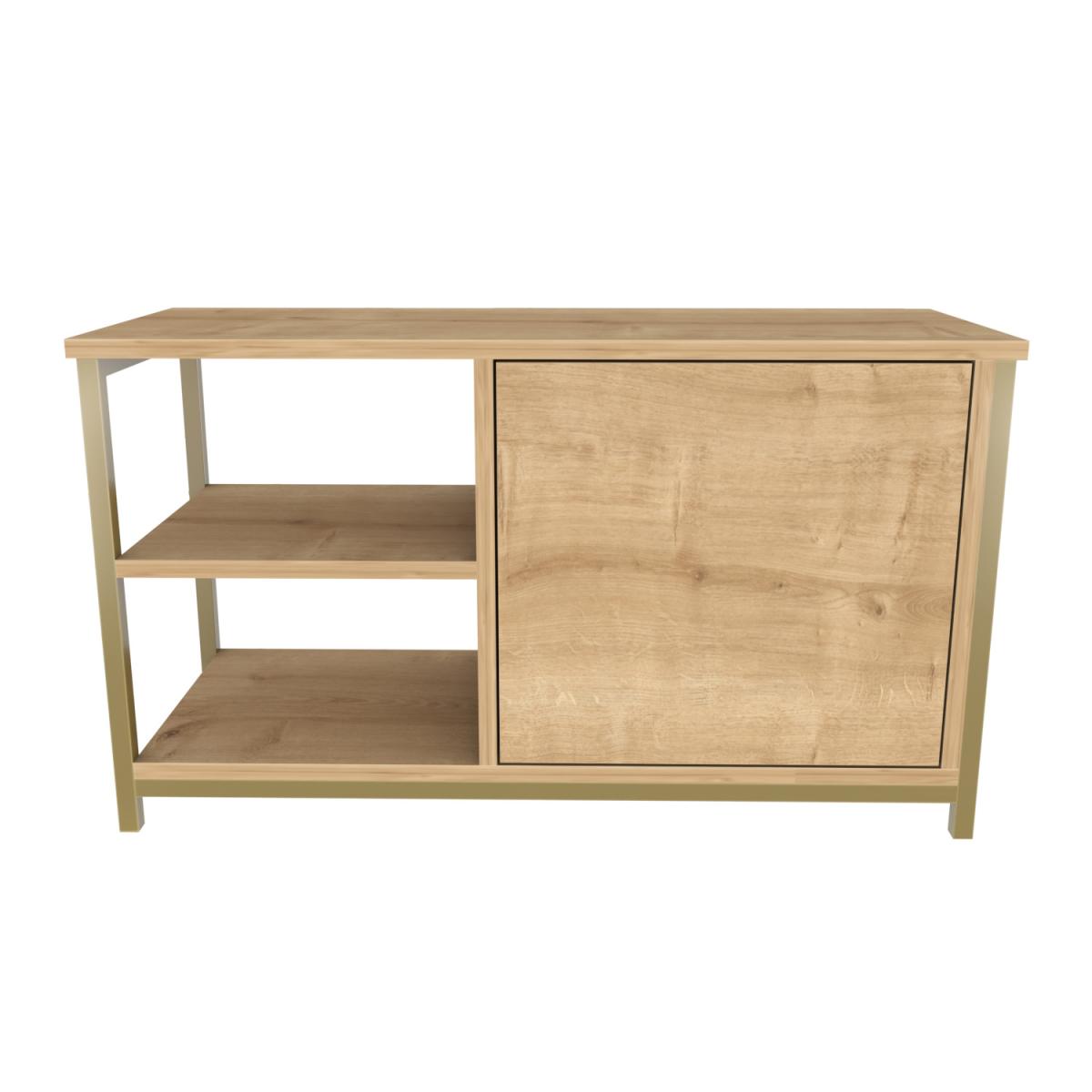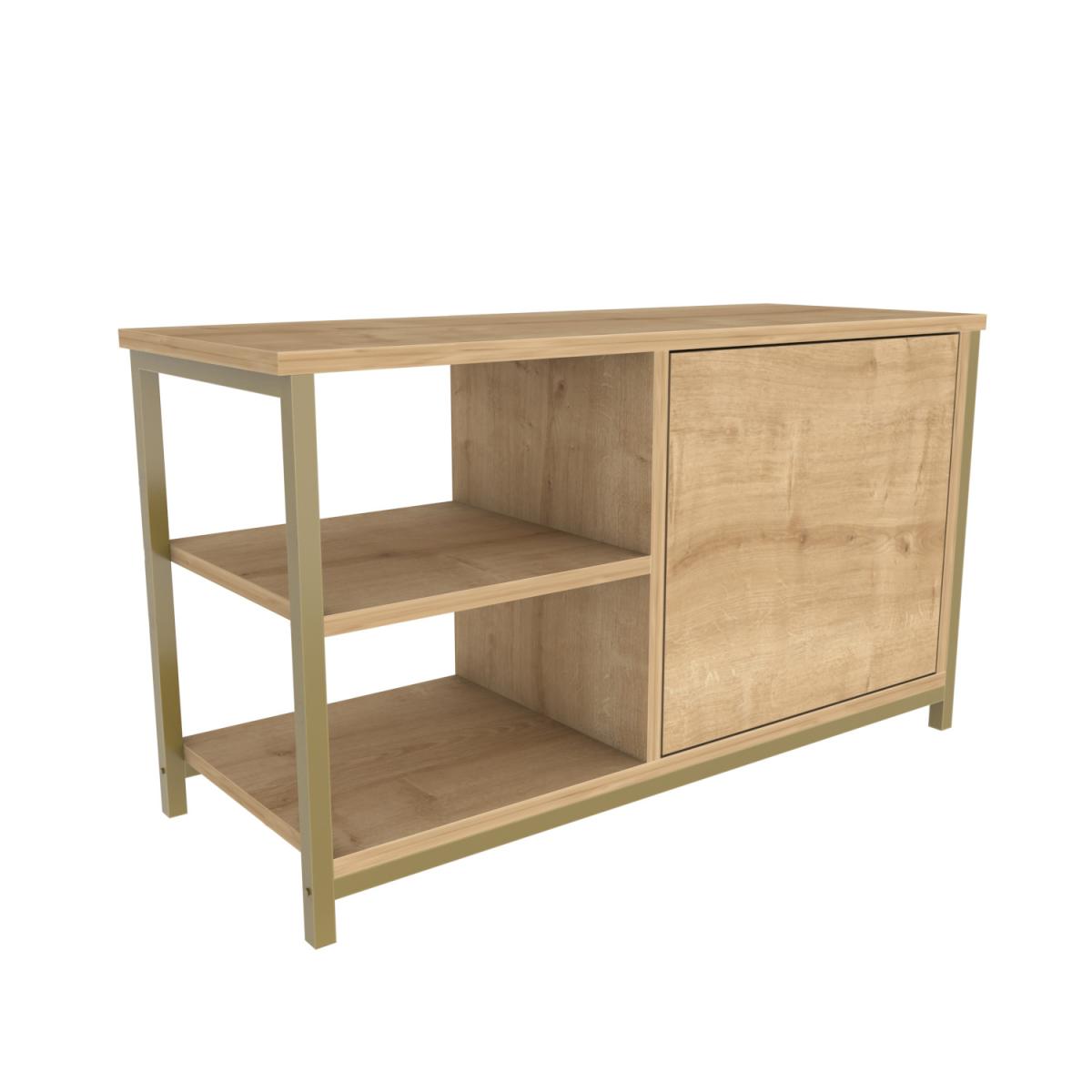 Muskegon 90 cm wide simple and minimalist media stand for TVs up to 41'' is defined by practical functionality and streamlined design. With two open shelves and one cabinet, this design offers huge storage space for your books, magazines, TV tuner, remote controller, or other media devices/collections. Top this design with a sleek flat-screen TV, then deck out vertical open shelves with your favourite books and DVDs, framed family photos, while using horizontal open shelves for your new video game console, tuner, and cable box. The cabinet is opened without a handle through a simple but innovative solution. The media stand is made of 18mm thick quality melamine coated particle board and banded with first-class PVC edge banding tape. The stand is also enhanced and strengthened with metal legs which makes it sturdy and durable. Metal legs are coated with scratch and impact-resistant industrial static paint. It is manufactured using eco-friendly and health-friendly TSE-certified materials. The product will be delivered to the customer in the original package as disassembled. It is designed to be assembled by the customer easily using simple household tools like a power drill or screwdriver. Assembly instruction and installation hardware are included in the package. For fast and error-free installation, product parts are numbered with stickers in accordance with the assembly guide.