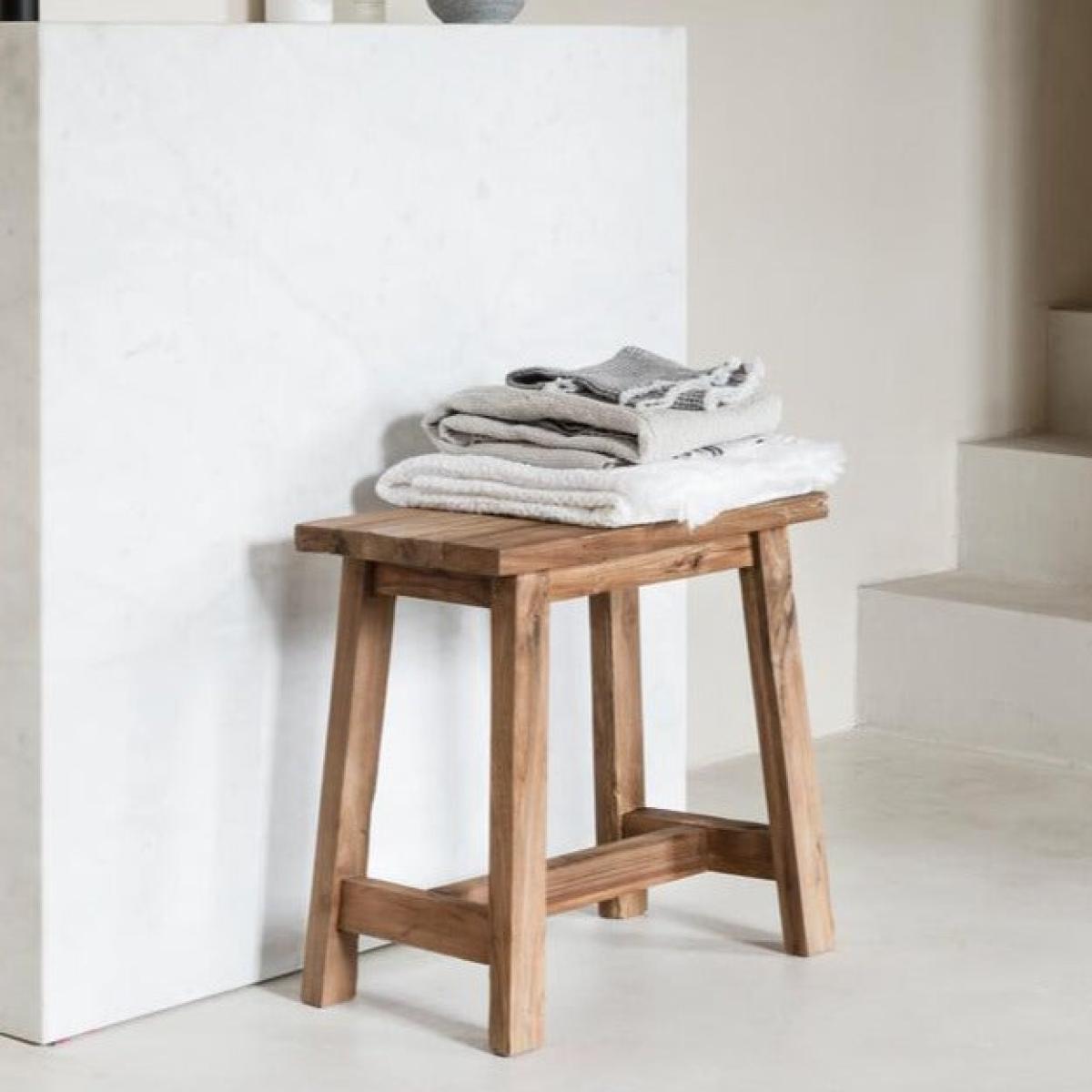 MUST Living's stool Easy is made of teakwood. The stool is shaped in a rectangular form and measures 45x45x25 cm. Besides a rectangular shape, Easy is also available in a rounded shape. Our wood is selected for its unique qualities and carefully crafted. Cracks, marks and other irregularities are part of its charm and provide the character we seek.