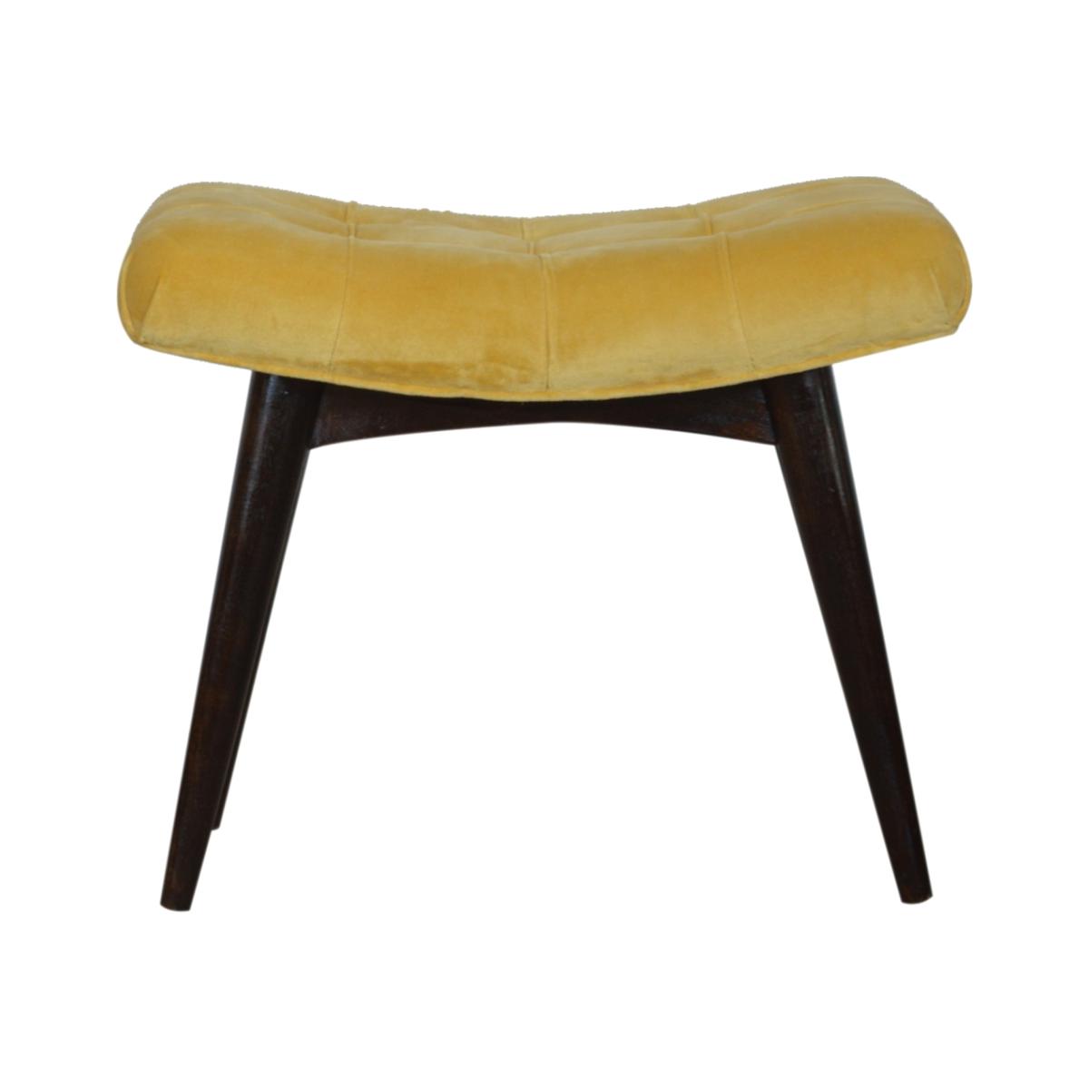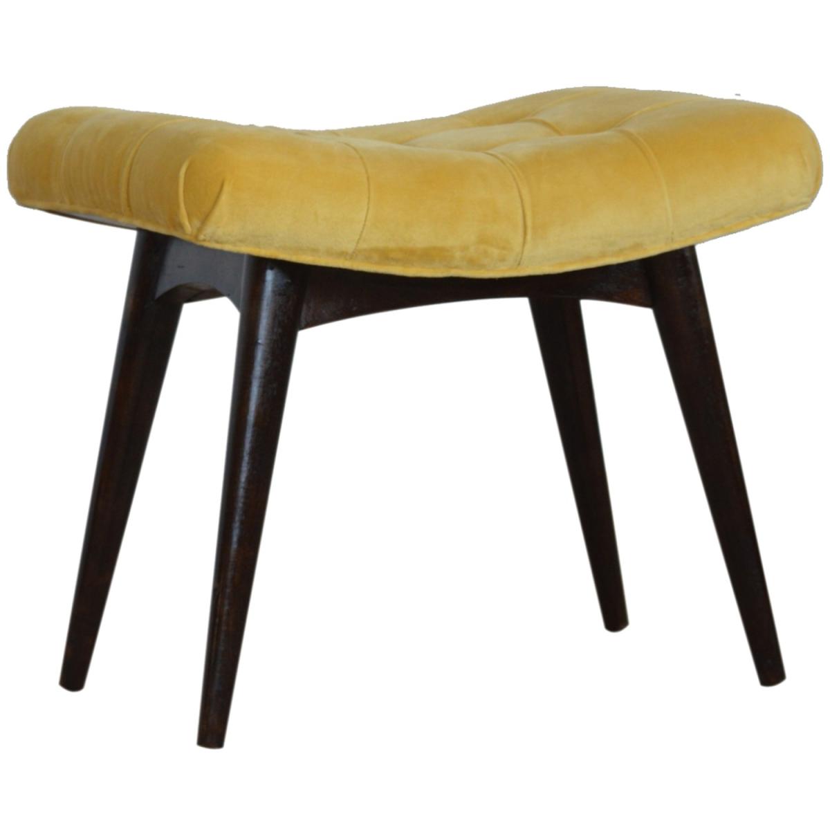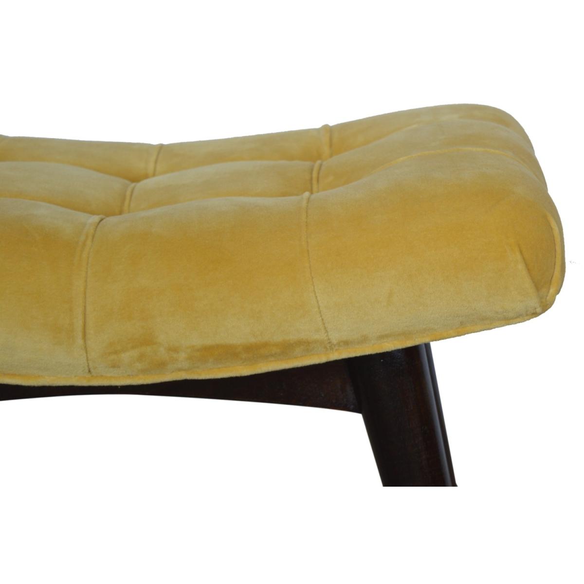 Mustard Cotton Velvet Curved Mango Wood Bench - Yellow