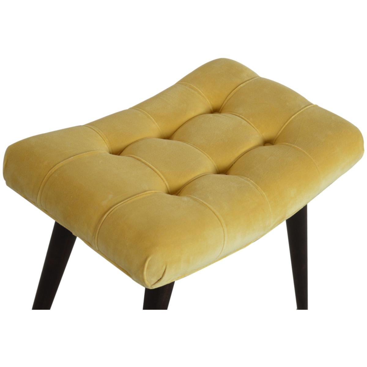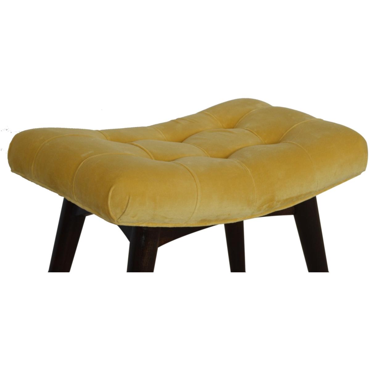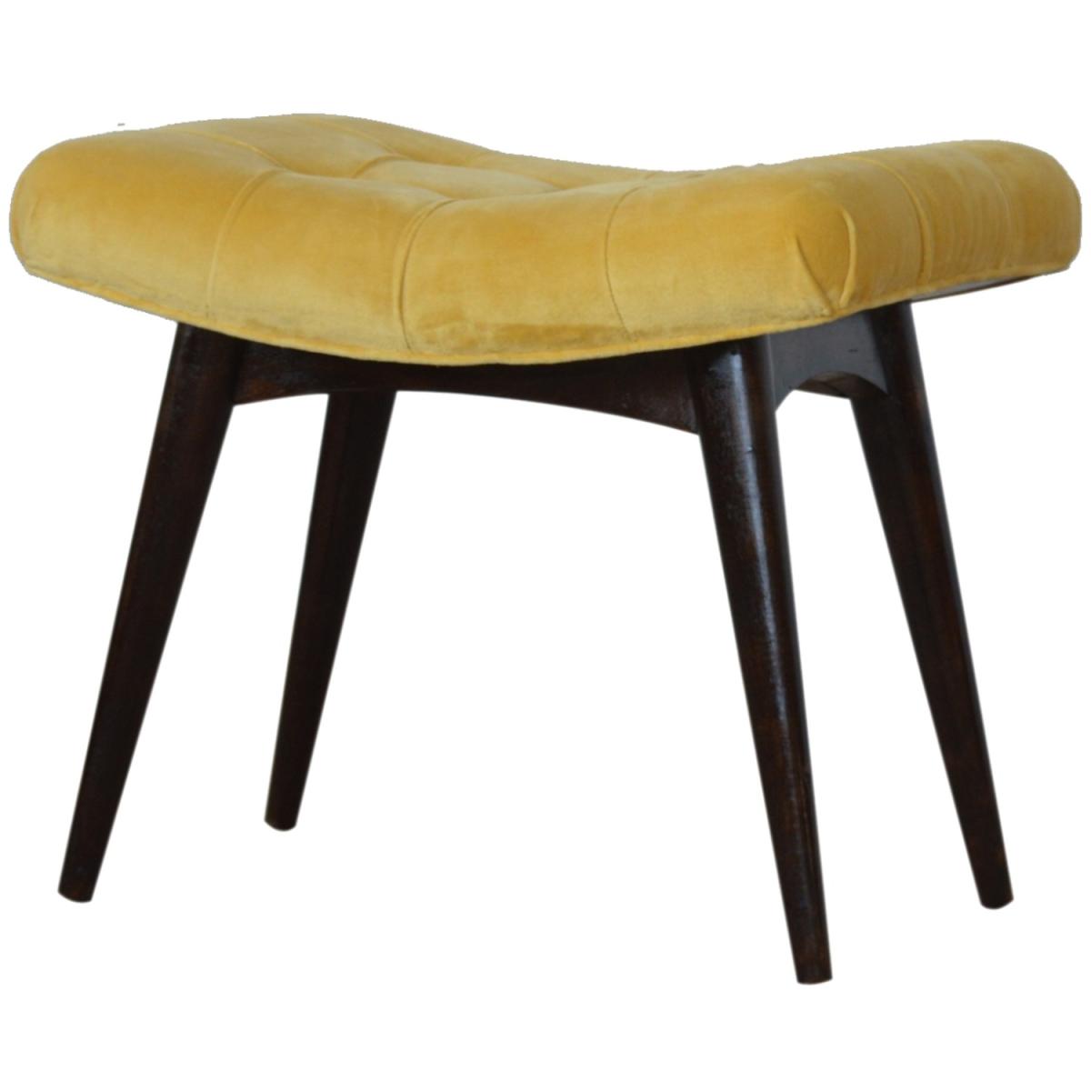 Mustard Cotton Velvet Curved Mango Wood Bench - Yellow