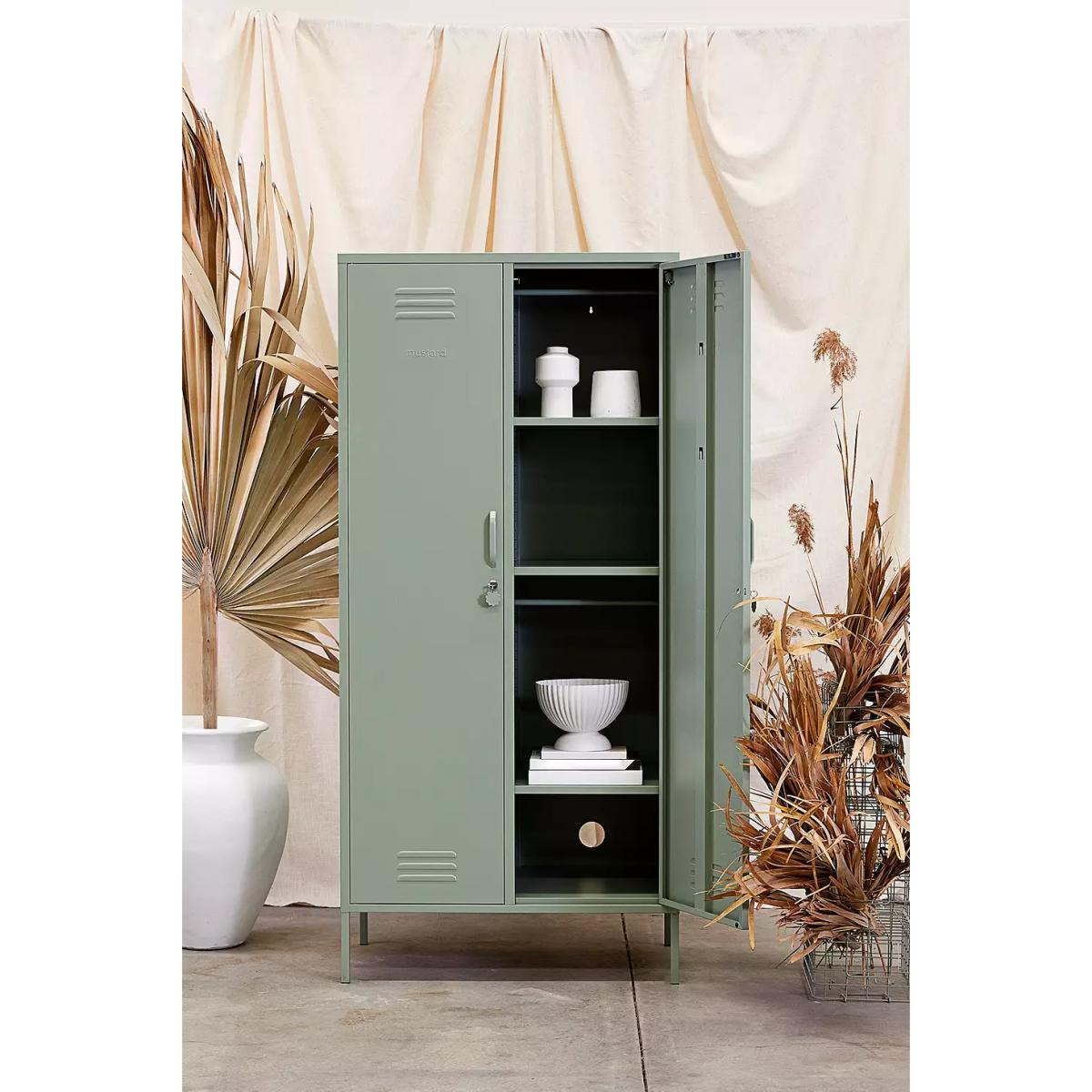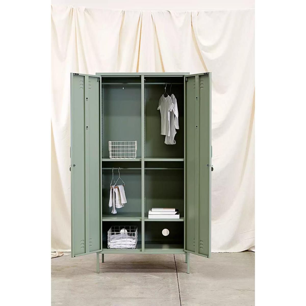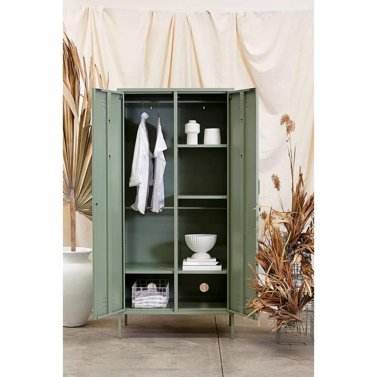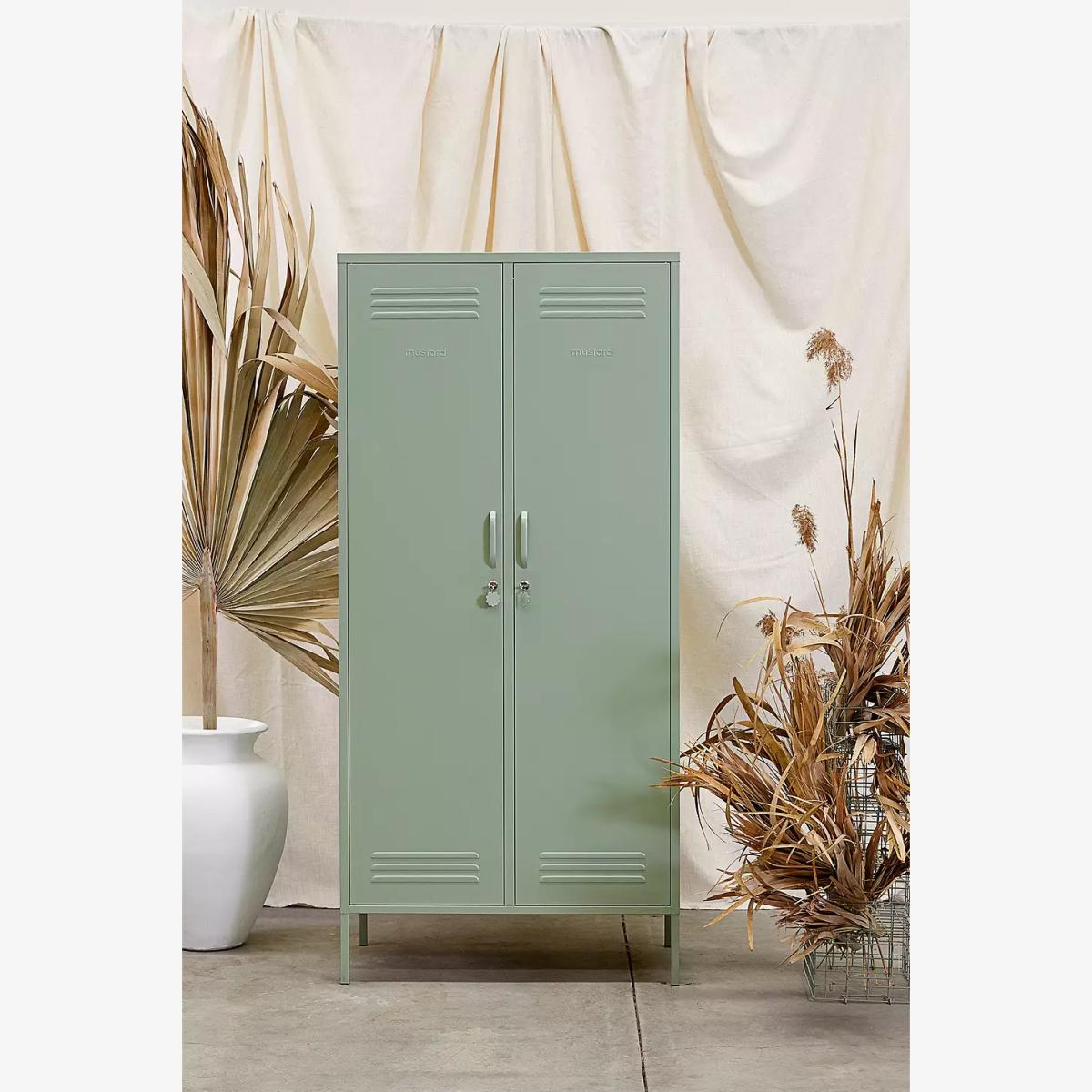 This retro storage solution by Mustard Made is perfect for upgrading your space. A double locker with adjustable interior rails and shelves, ideal for hanging up your favourite 'fits. The design is complete with two locker-style doors with air vents and handles, along with a cable hole to reverse for storing tech inside. To reduce the risk of tipping, we strongly recommend securing your locker to the wall. All Mustard lockers are equipped with slots in the back to enable you to do so. *Online return only. This item cannot be returned instore. Please note furniture items currently cannot be shipped to Northern Ireland or The Republic of Ireland. Delivery of large furniture items may take 1-2 weeks and are therefore not eligible for Next Day Delivery.* **Content + Care** \- Metal \- Assembly required **Size** \- H: 183cm x W: 85cm x D: 50cm