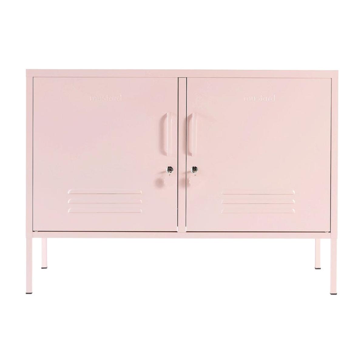 I love this little piece because its soft blush tone adds warmth and subtle charm to a variety of interiors. It works particularly well in contemporary, Scandinavian, or boho spaces where colour accents and light textures are key. The Lowdown cabinet's clean lines and practical size make it versatile for use in living rooms, bedrooms, or even as a bathroom storage solution. To style it effectively, consider pairing it with neutral or pastel accessories, such as woven baskets, vintage vases, or minimal artwork, to enhance its understated elegance. Its colour also makes it a great backdrop for colourful or patterned objects, helping them stand out without overwhelming the space.