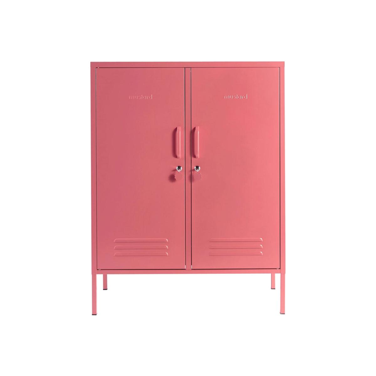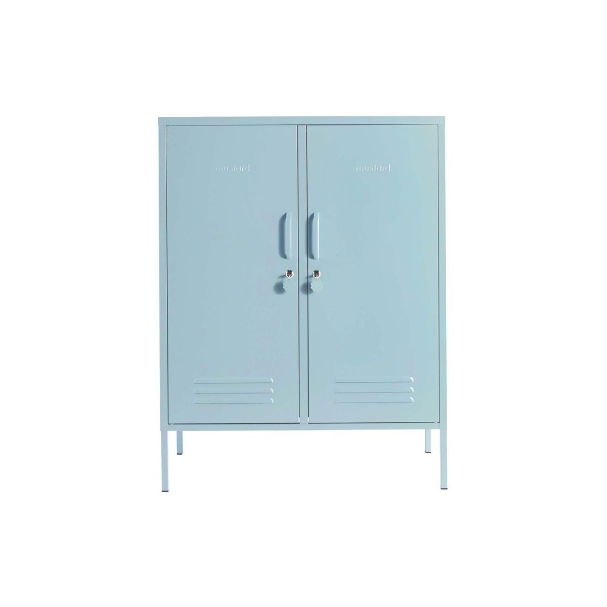 The Midi locker has maximum storage potential and she loves to be artfully styled on top to look her best. Use her as a toy cupboard, in the kitchen or hiding all the shoes and bags in the hallway. Inside Two adjustable shelves (in four parts), two handy hook, cable hole, wall attachment points. Outside Handles, locks, custom keyrings, Mustard logo, air vents.