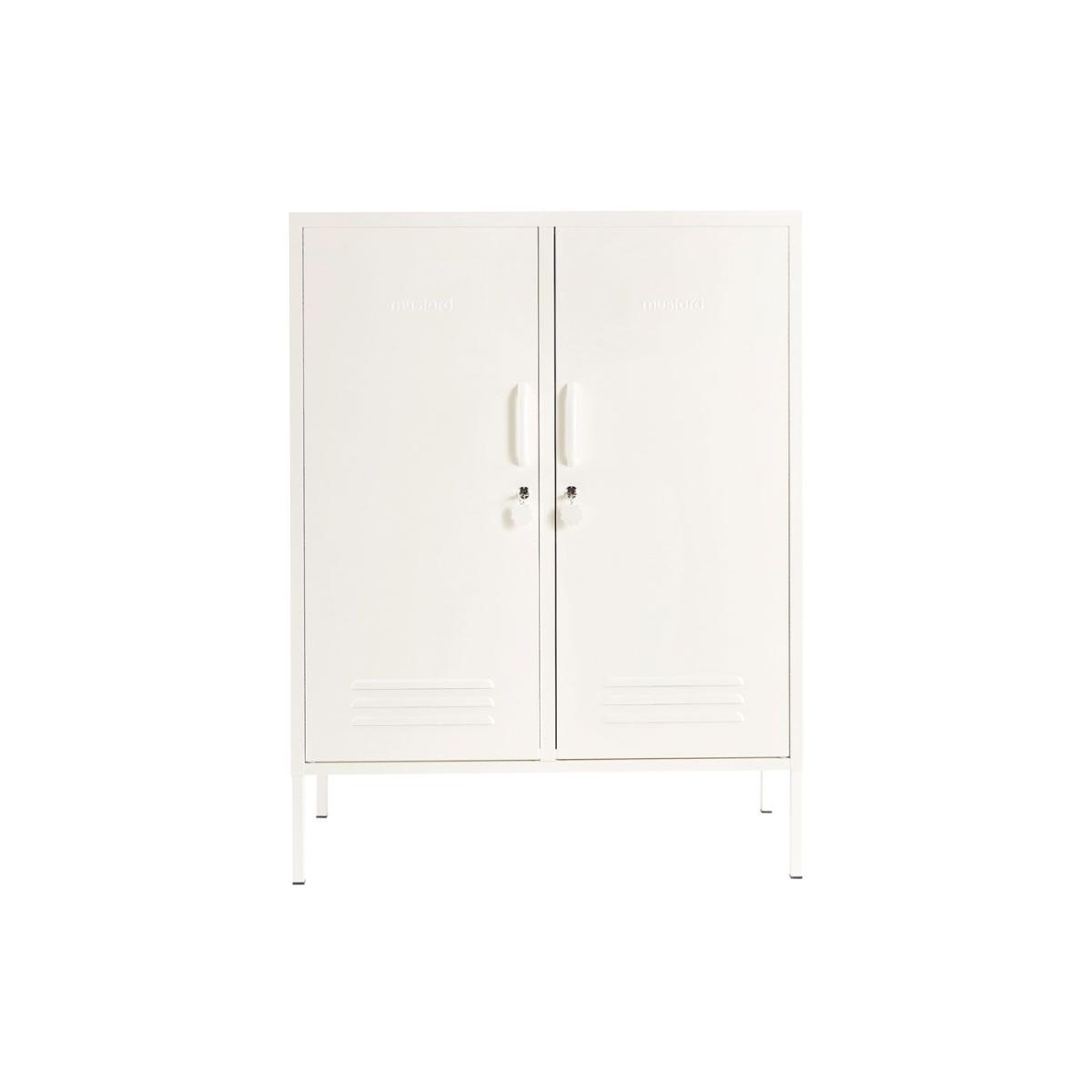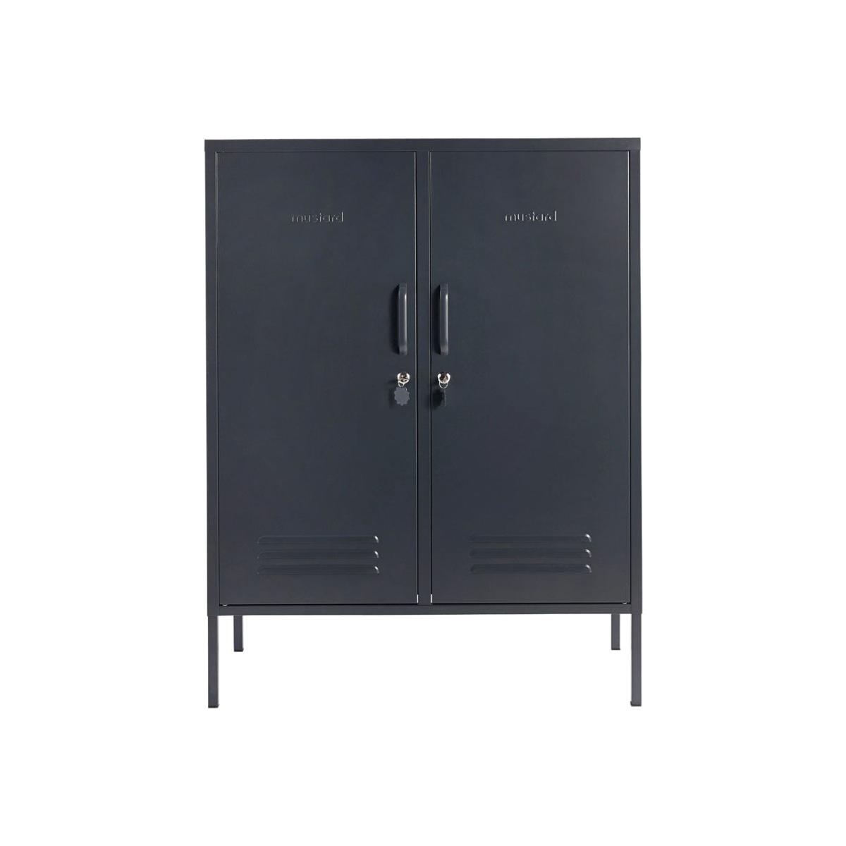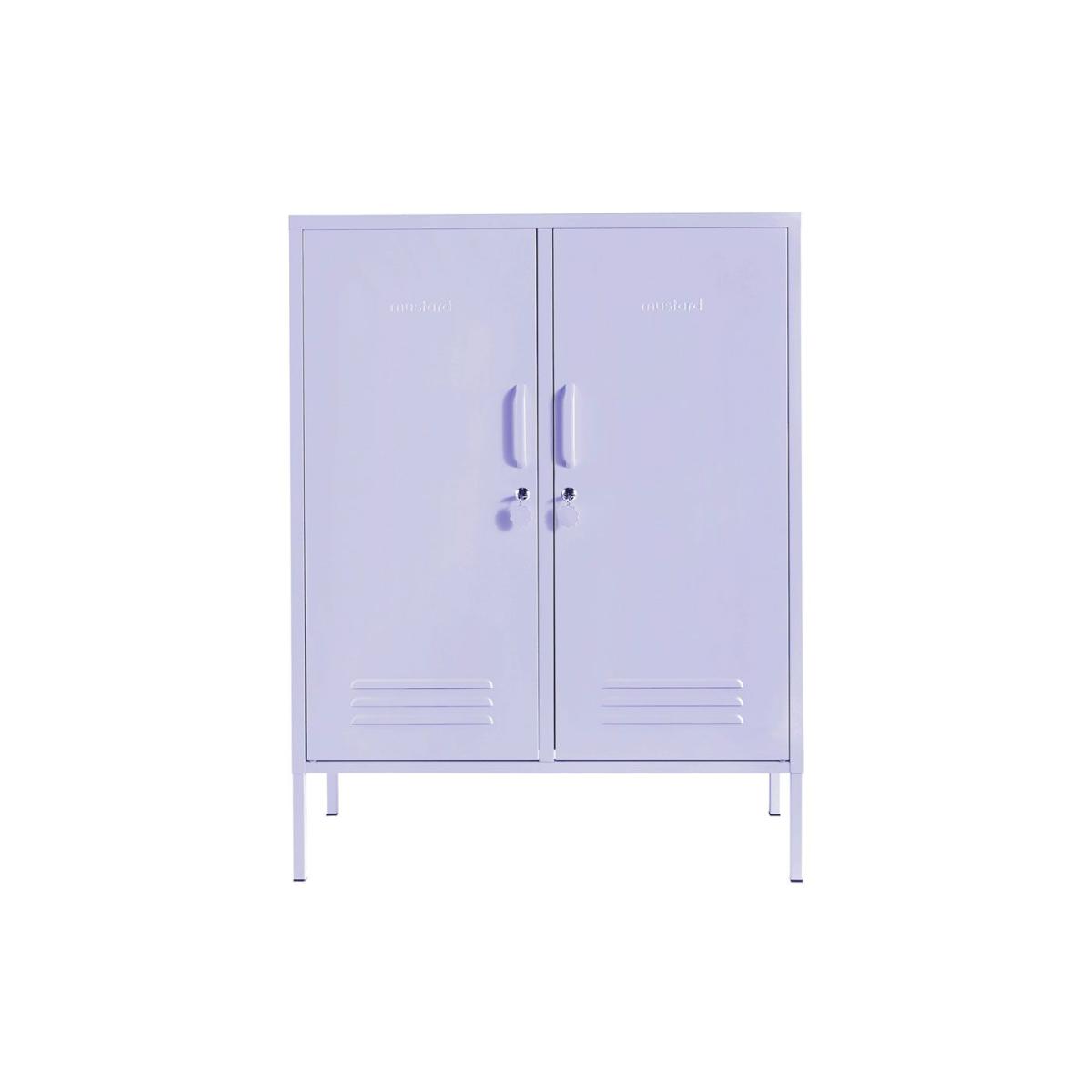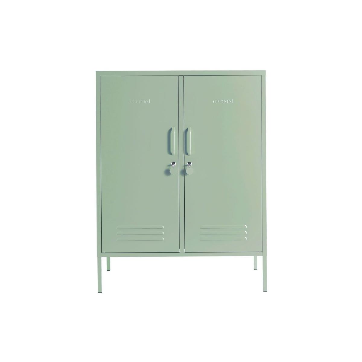 The Midi locker has maximum storage potential and she loves to be artfully styled on top to look her best. Use her as a toy cupboard, in the kitchen or hiding all the shoes and bags in the hallway. Inside Two adjustable shelves (in four parts), two handy hook, cable hole, wall attachment points. Outside. Handles, locks, custom keyrings, Mustard logo, air vents.