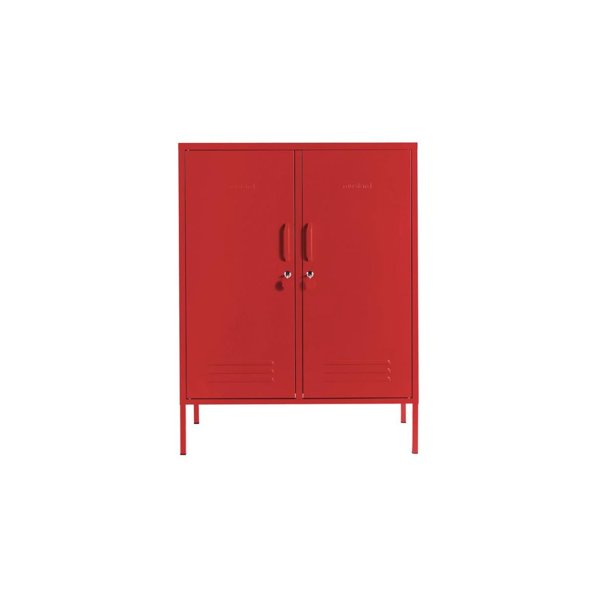 The Midi locker has maximum storage potential and she loves to be artfully styled on top to look her best. Use her as a toy cupboard, in the kitchen or hiding all the shoes and bags in the hallway. Inside Two adjustable shelves (in four parts), two handy hook, cable hole, wall attachment points. Outside Handles, locks, custom keyrings, Mustard logo, air vents.