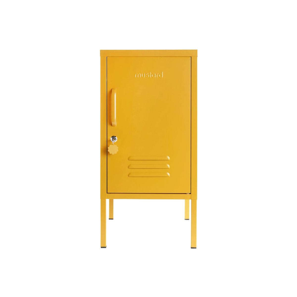 The Shorty to the Right locker makes itself at home tucked neatly next to your desk, snuggled up next to your lounge or sitting beside your bed. Our petite little locker might be small but there is loads of room inside. The door opens to the Right. Inside:Two adjustable shelves, one handy hook, cable hole, wall attachment points. Outside:Handle, lock, custom keyring, Mustard logo, air vents.