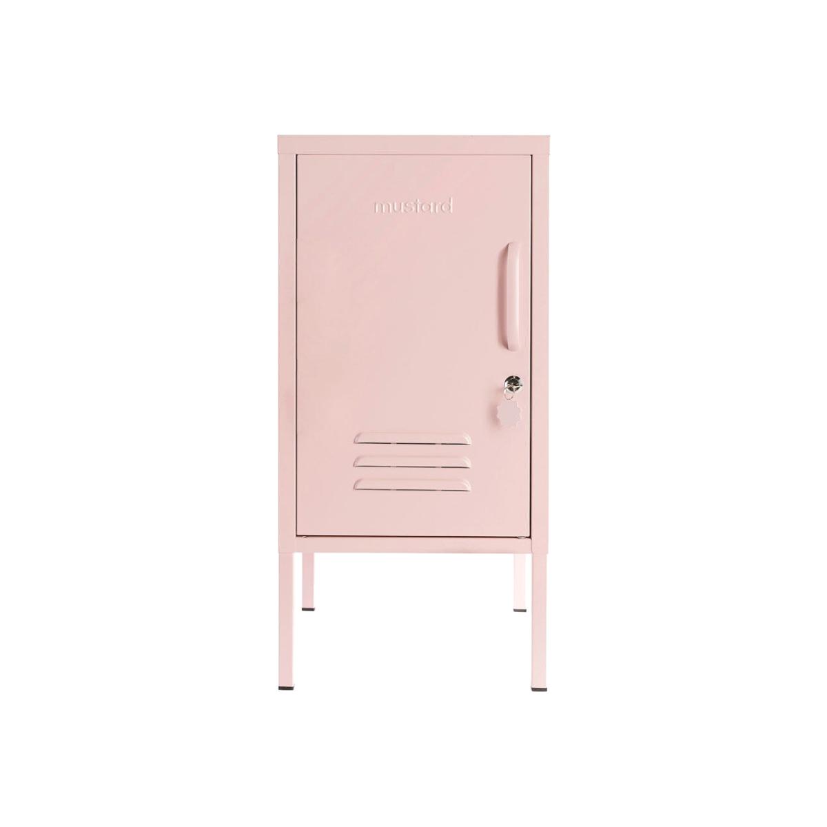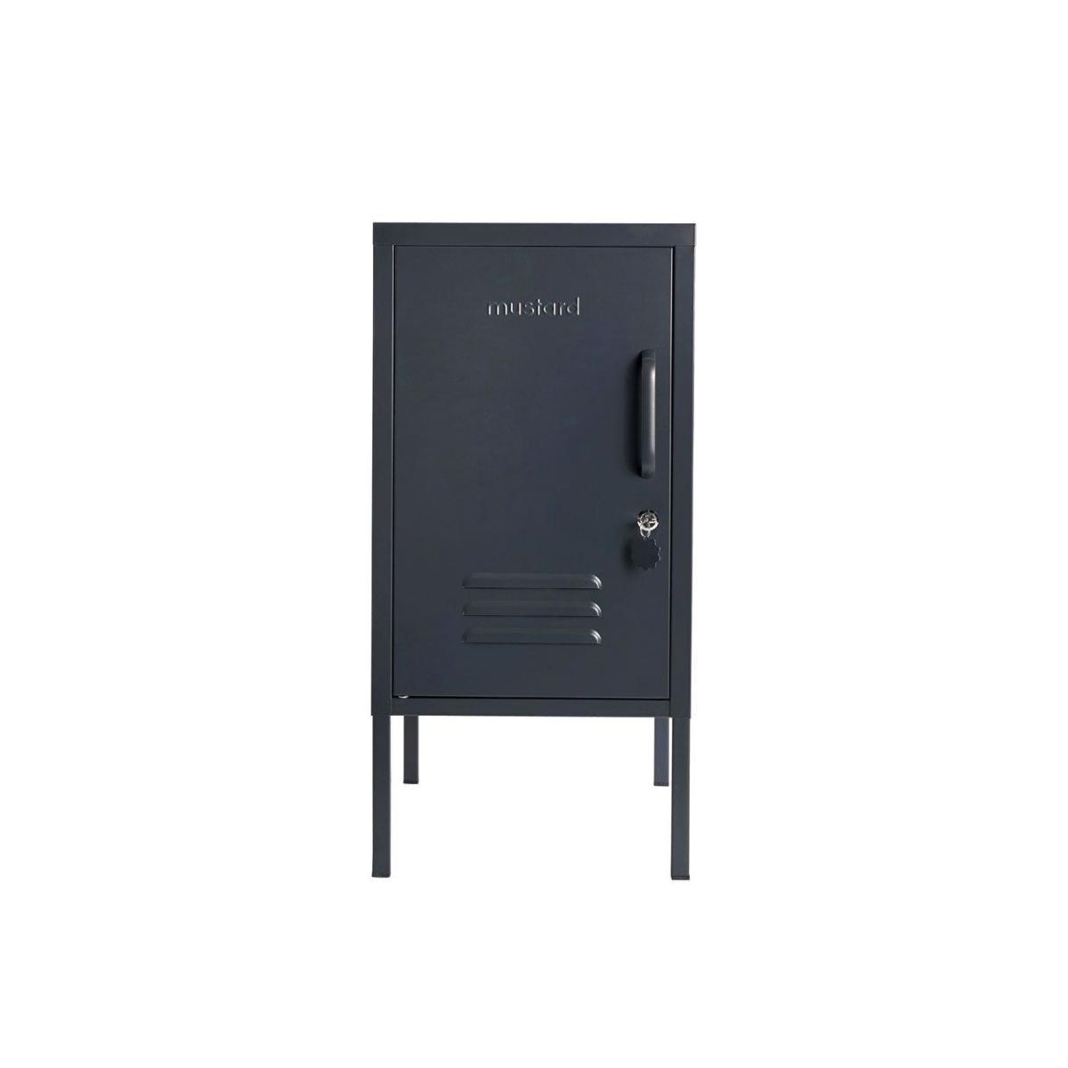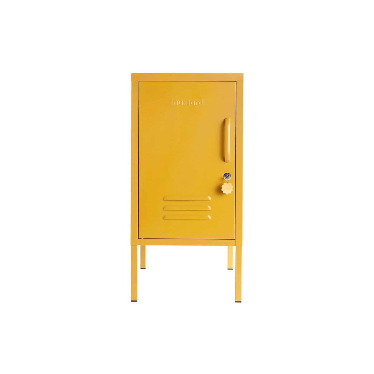 The Shorty to the Left locker makes itself at home tucked neatly next to your desk, snuggled up next to your lounge or sitting beside your bed. Our petite little locker might be small but there is loads of room inside. The door opens to the Right. Inside:Two adjustable shelves, one handy hook, cable hole, wall attachment points. Outside:Handle, lock, custom keyring, Mustard logo, air vents.