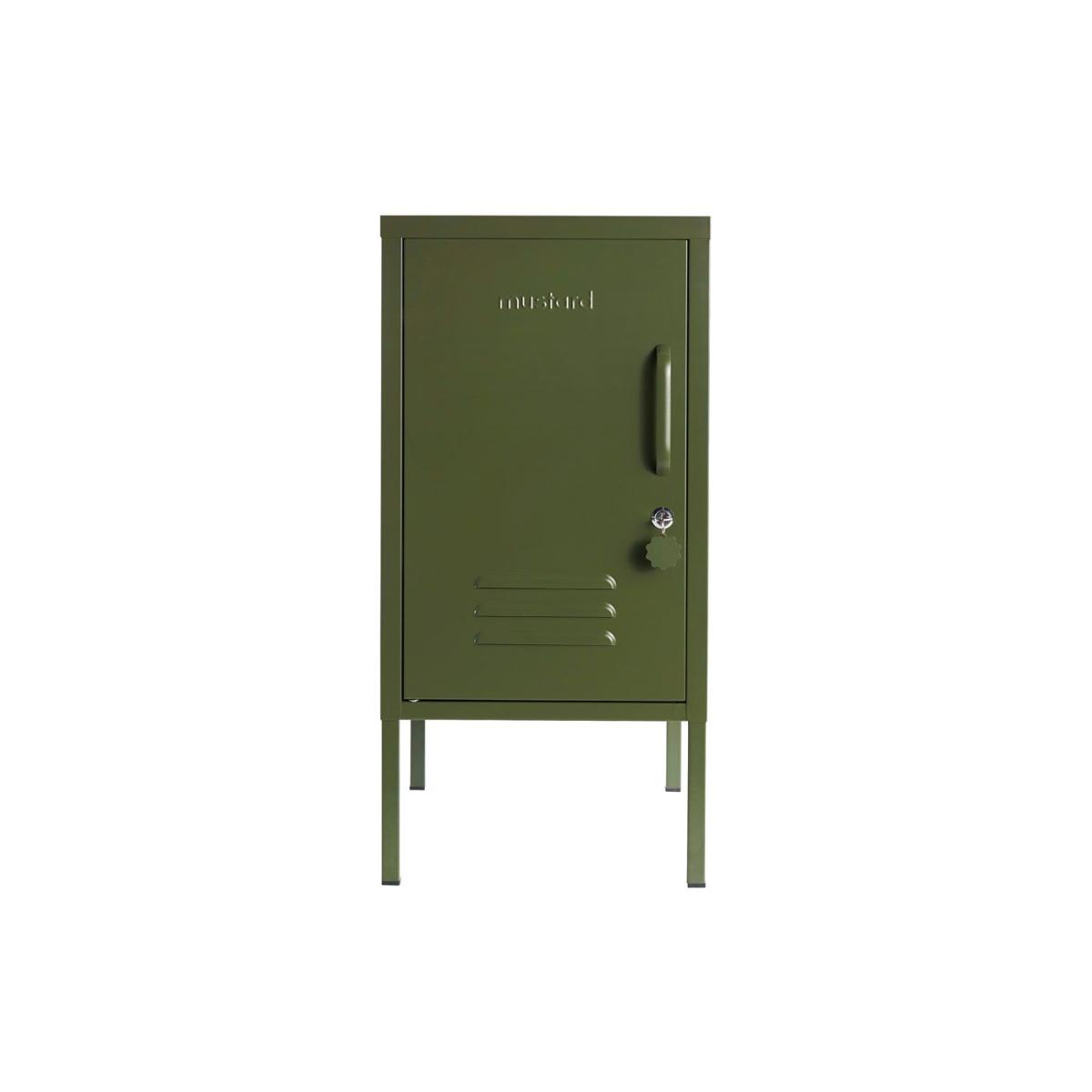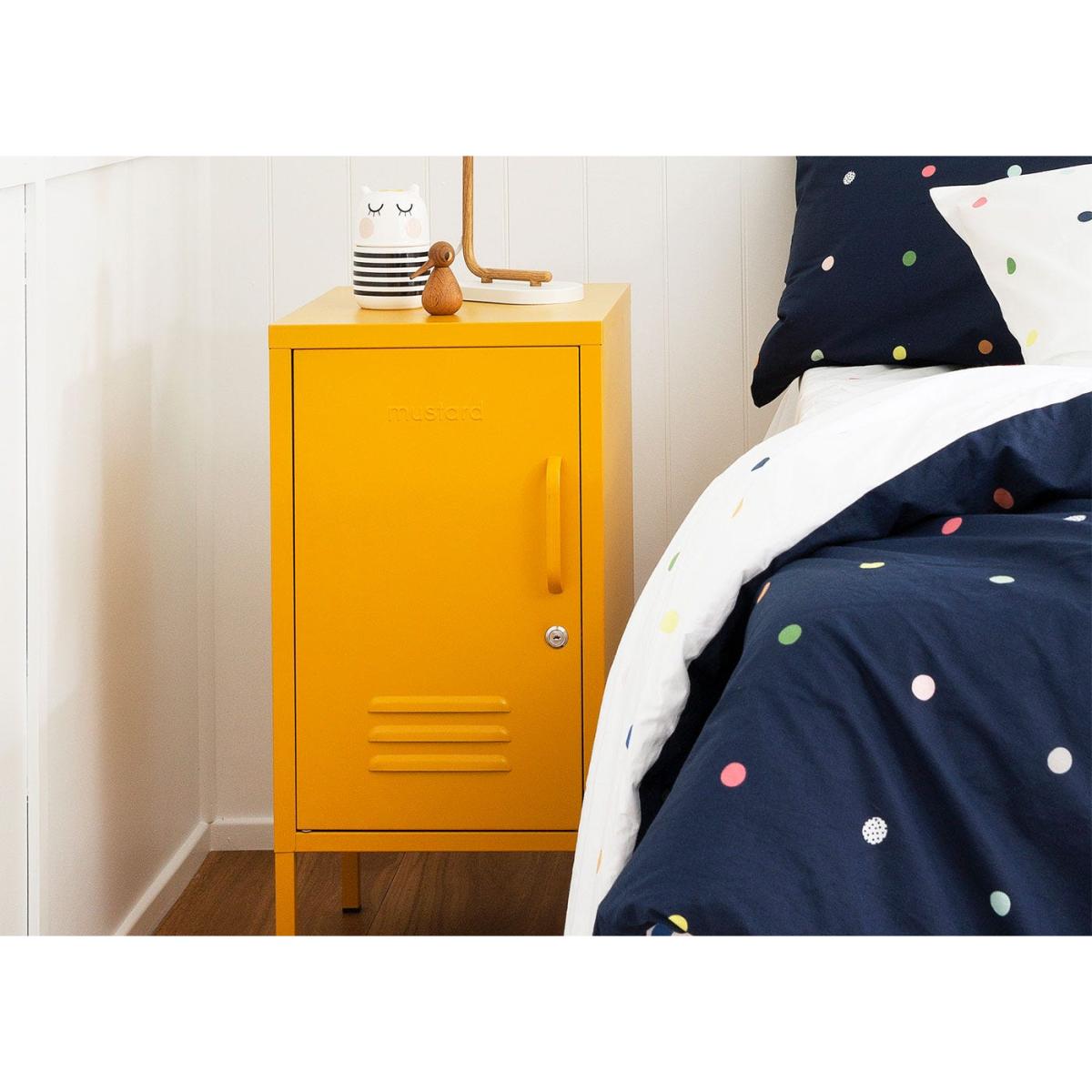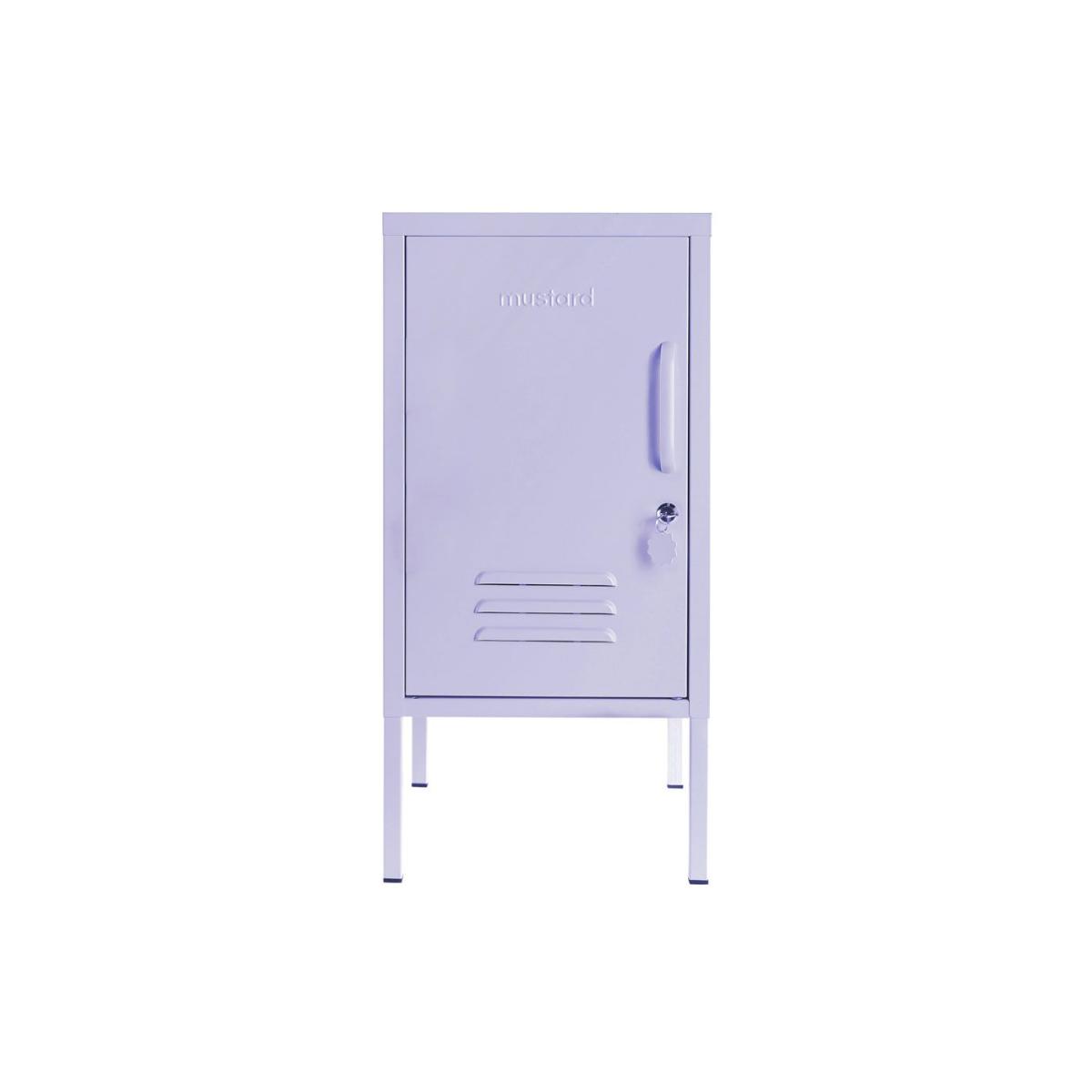 The Shorty to the Left locker makes itself at home tucked neatly next to your desk, snuggled up next to your lounge or sitting beside your bed. Our petite little locker might be small but there is loads of room inside. The door opens to the Right. Inside:Two adjustable shelves, one handy hook, cable hole, wall attachment points. Outside:Handle, lock, custom keyring, Mustard logo, air vents.
