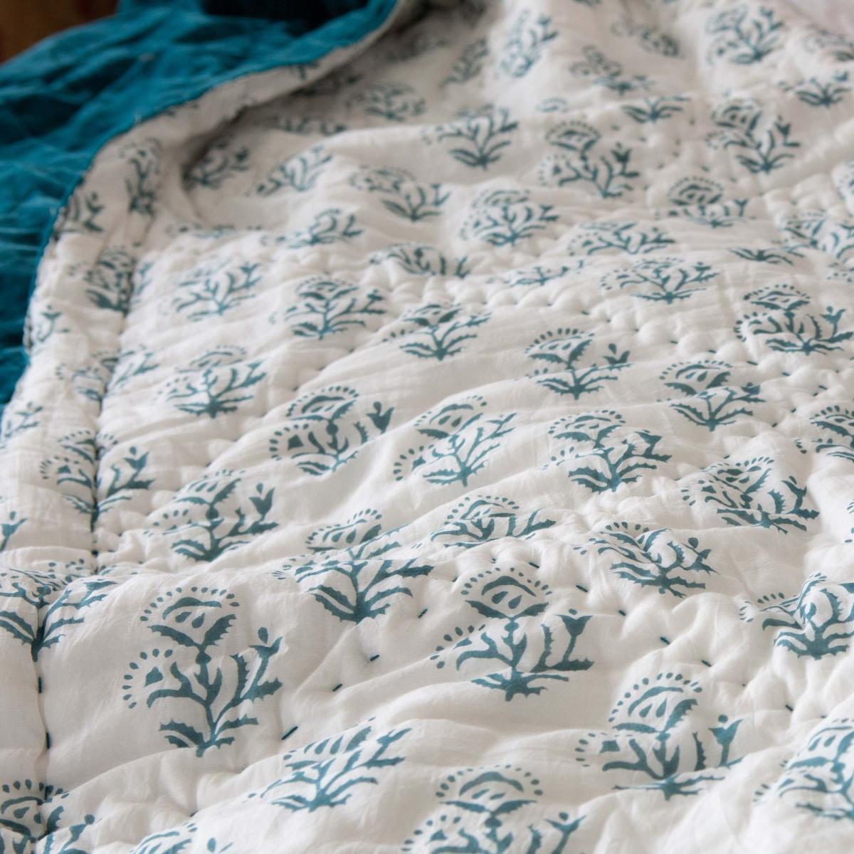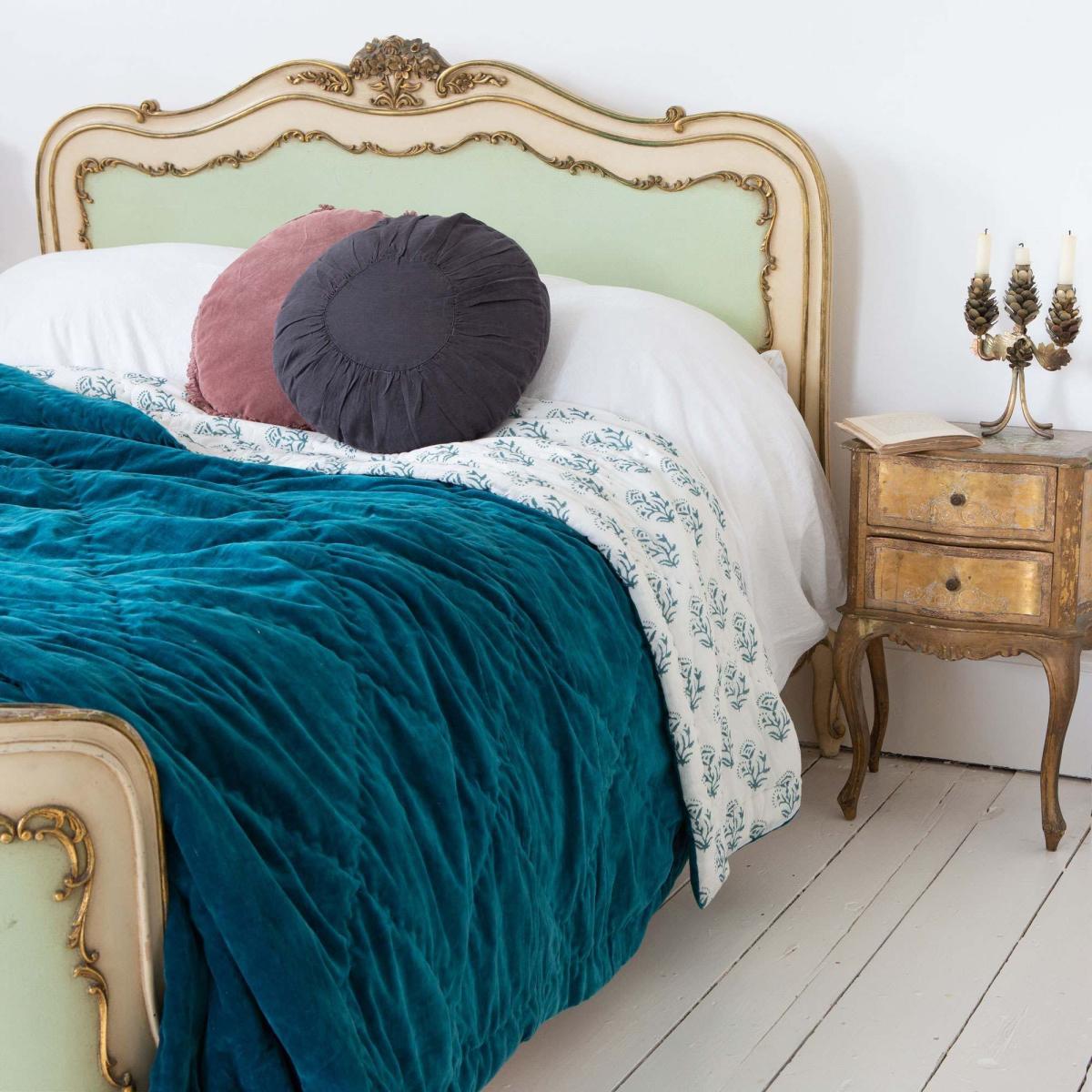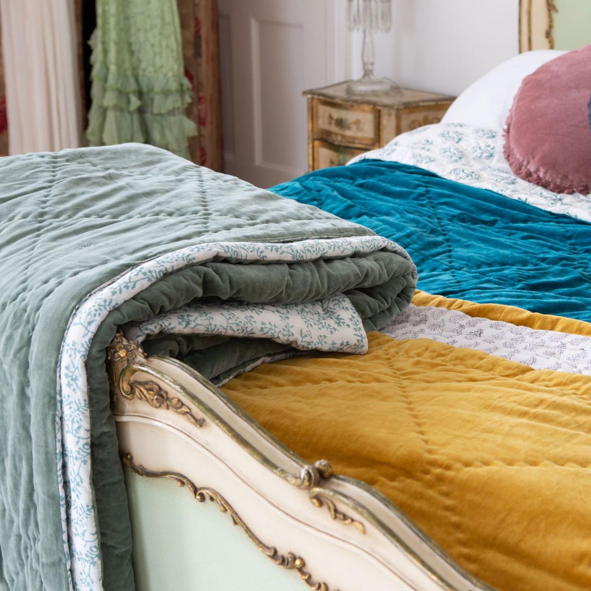 A sumptuous cotton velvet king size quilt, with a natural cotton printed reverse. Finished with matching stitching this stylish quilt will add a touch of luxury to any bedroom or sitting room. Available in three colours.