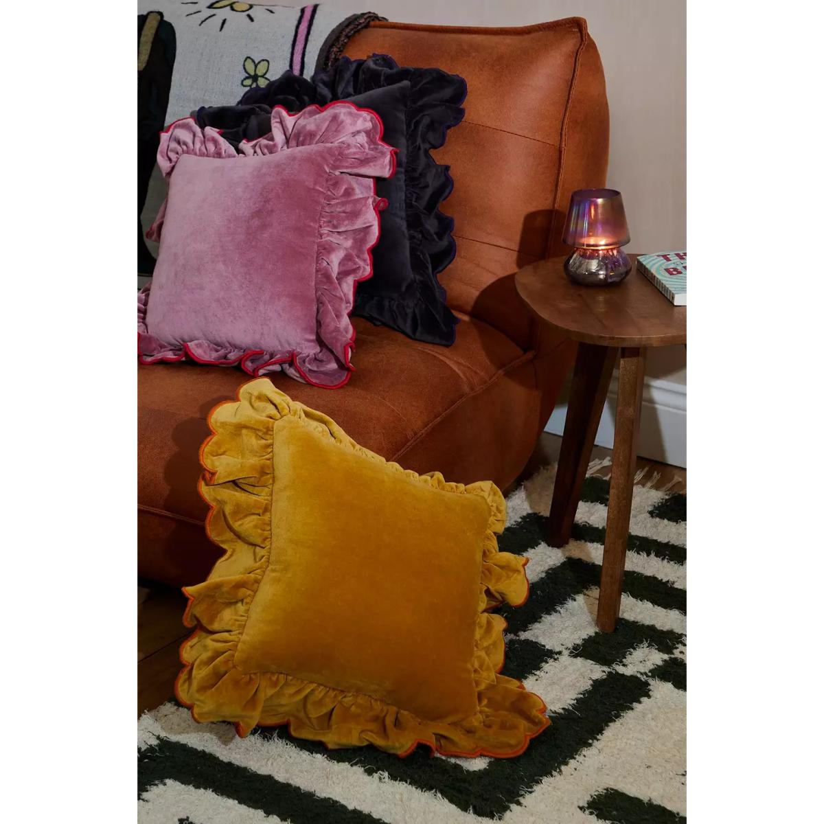 This mustard velvet cushion with ruffle detailing is a great way to add warmth and texture to a variety of interiors. I love its bold colour and luxe velvet finish, which work particularly well in eclectic, boho, or vintage-inspired schemes. It brings a touch of glamour without feeling overly formal, making it versatile for both sofas and beds. For styling tips, try mixing it with neutral tones or other rich textures - like a chunky knit throw or a patterned rug - to create a layered, inviting look. Its ruffle detail adds a playful, feminine touch, so it’s perfect for injecting a bit of personality into your space.
