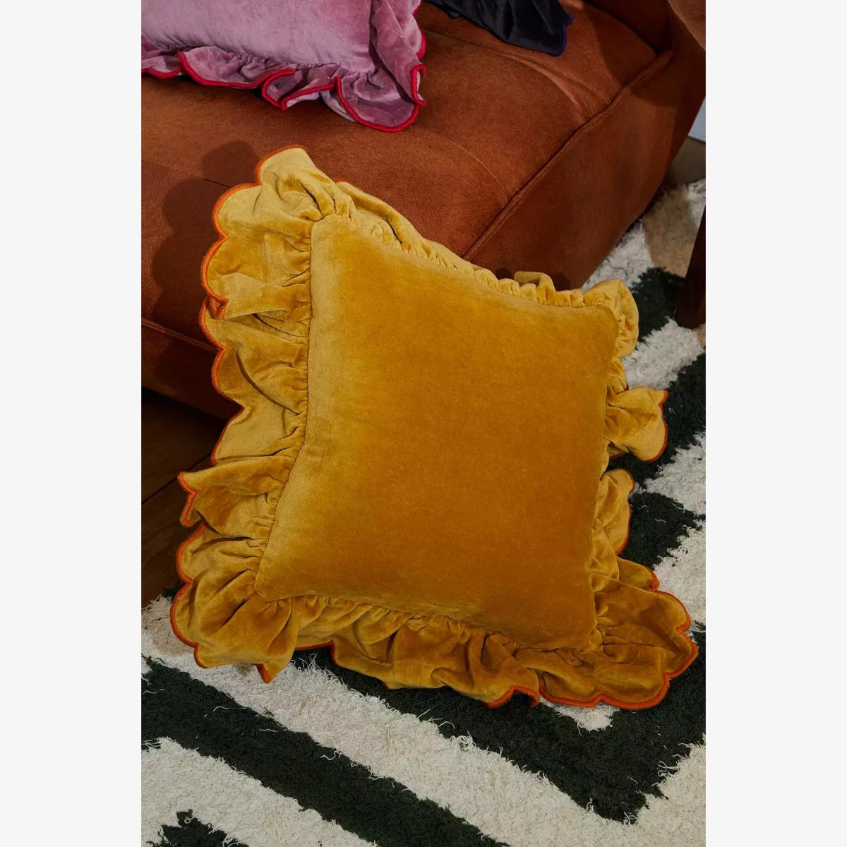 Mustard Velvet Ruffle Cushion - Gold ALL at Urban Outfitters