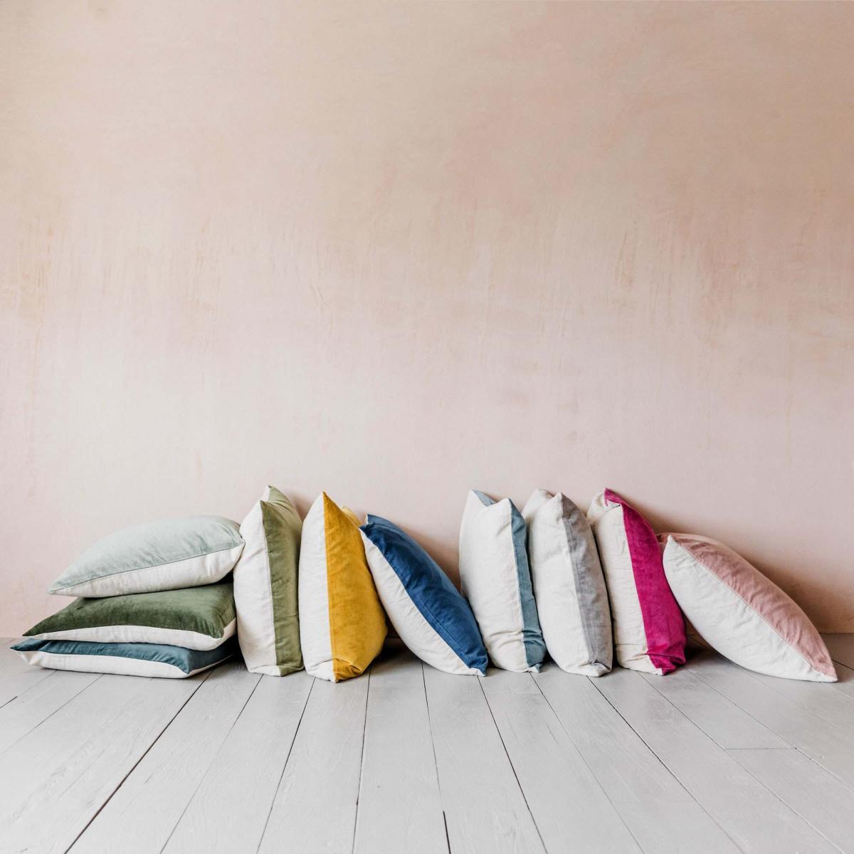 Sumptuously soft and luxurious velvet cushions in a wide range of vibrant colours, each finished with a natural linen backing. The perfect addition to your sofa, armchair or bed.