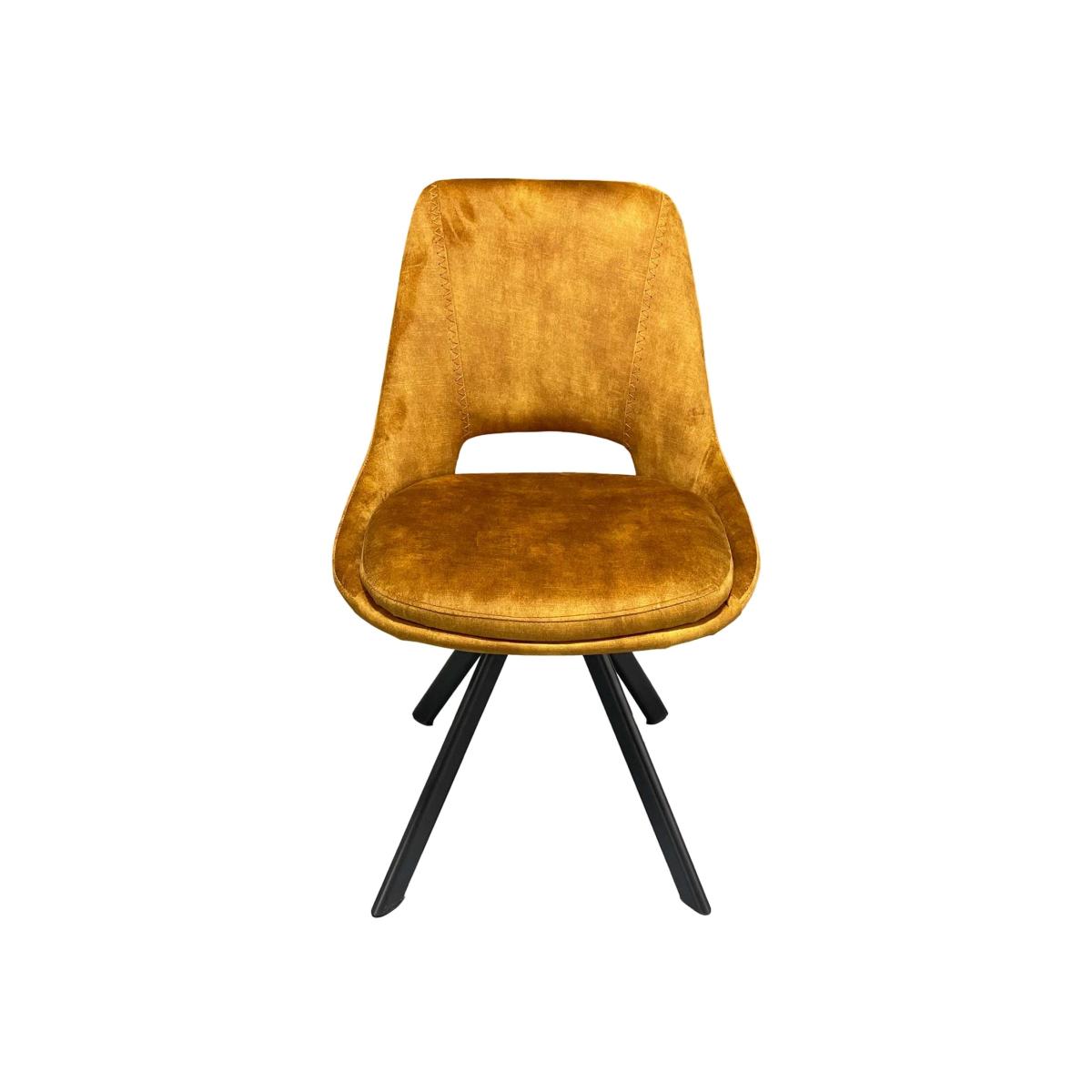 Introduce a vibrant pop of colour and contemporary comfort to your dining space with our swivel dining chairs. Upholstered in a sumptuous, inviting velvet, these chairs offer a luxurious feel and a striking mustard hue that is sure to enliven any room. The sleek, black powder-coated steel legs provide a sturdy and modern base, whilst the 180-degree swivel feature adds a dynamic and functional touch, allowing for effortless movement and conversation. Ideal for both formal dinners and casual gatherings, this elegant pair of chairs combines sophisticated style with everyday practicality.