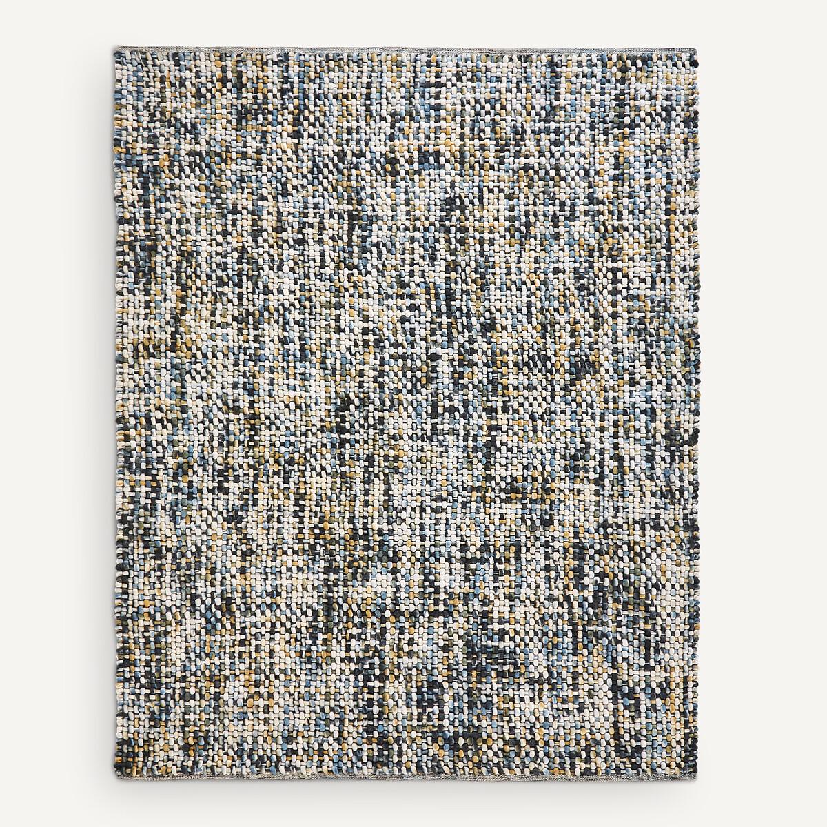 The comfort and softness of wool, enhanced by the original shades of hand-dyed tie and dye colouration. The skeins of wool are twisted and then immersed in successive colour baths. The wool is randomly dyed in multiple shades, creating subtle gradations of colour. Hand-woven by expert craftsmen, each rug is a unique piece, a guarantee of exacting craftsmanship and exceptional quality. Each rug is handmade in India by artisan weavers, masters of an ancestral skill handed down from generation to generation. Knotted, tufted or hand-woven, our rugs perpetuate traditional weaving techniques that bear witness to a culture dating back thousands of years. Genuine decorative elements offering thermal and acoustic insulation, they add a unique and warm touch to your home furnishings. Product Details • 100% wool • Craftsmanship: Hand woven • Weight: 4800g/m² • Pile height: 20mm Quality Info Wool is a warm and comfortable natural fibre. As well as being hard-wearing and durable over time, wool rugs provide acoustic and thermal comfort. Care Advice • Some materials such as wool are very fibrous and you can actually observe a piling during the first weeks of use: this is normal, because the carpet "bursts" by rejecting its excess fibres. Remove lint as much as possible by hand and definitely do not use the vacuum cleaner in brushing mode because this has the effect of pulling the fibres and tearing them out.. The pilling will improve over time. • We advise you to vacuum it very little the first month and then to vacuum it without rubbing too much, always without using the brush. • Remove stains immediately with a clean damp cloth. • Dry clean recommended. Dimensions Size 1 • Width: 120cm • Length: 180cm. Size 2 • Width: 160cm • Length: 230cm. Size 3 • Width: 200cm • Length: 290cmDelivery:. Available for home delivery. • OEKO-TEX® Standard 100. Standard 100 certification by OEKO-TEX® tests textile products for harmful substances via an independent, international label.