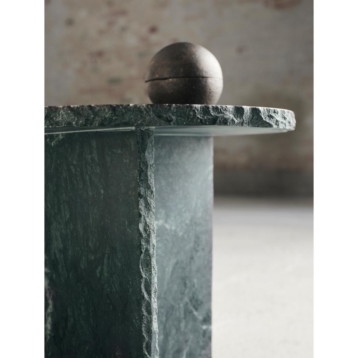 I’m a fan of this green marble side table for its clean lines and the depth of its veining, which brings subtle drama without overpowering a room. It sits equally well in minimalist Scandi schemes or an urban, industrial loft - the dark green hue adds a refined pop against neutral walls. Styling-wise, keep the top simple: a low-profile lamp in brass or matte black, a single art book and a small plant or sculptural object. Position it beside an armchair or at the end of a sofa, and use coasters or trays to protect the marble if you’re placing drinks on it.