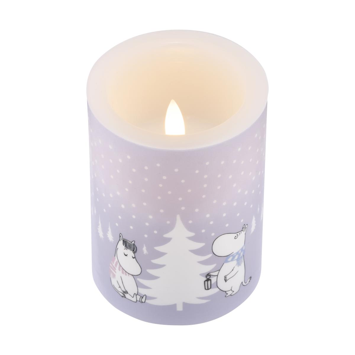 Moomin block candle LED 10 cm from Muurla is designed by Kata Nowak-Kiminki and made from plastic and paraffin wax. The LED light is created to highlight the printed artworks from the enchanted world of the Moomins. By giving off a warm and cosy illumination, the candles give the carefully created designs the attention they deserve. The candles are designed to resemble classic candles and create an atmospheric ambience in your Moomin-themed home. Perfect for adding a touch of magic to your decor.