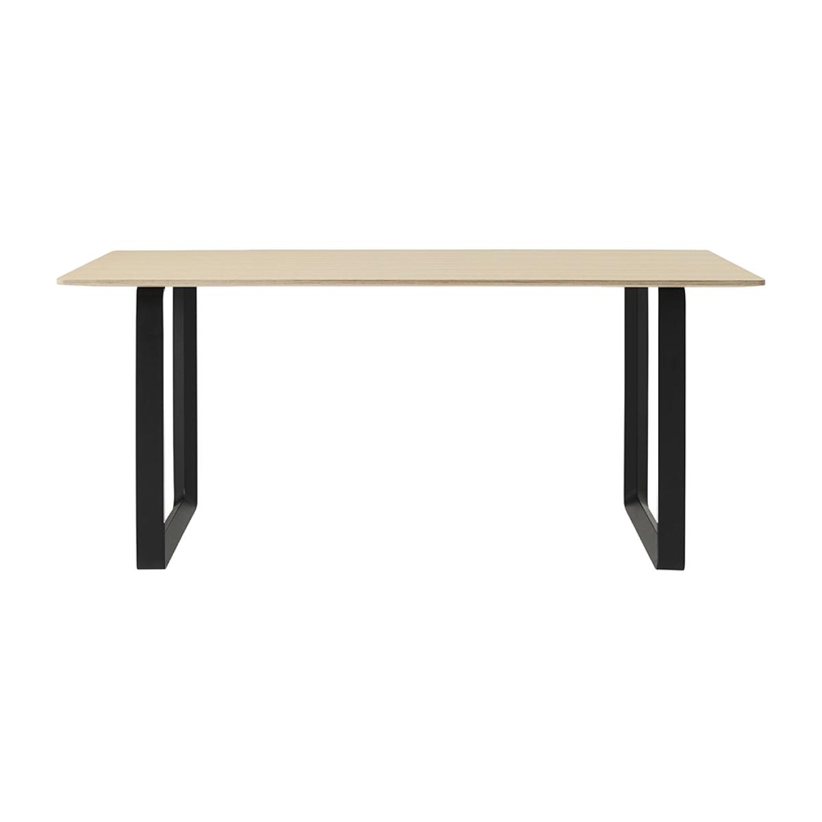 Style your home with beautiful simplicity thanks to this 70/70 dining table from Muuto. Designed by Taf Studio, this table oozes sleek Scandinavian elegance. With an oak veneer top, it's finished with two cube legs in black powder coated aluminium. Key features: * 4-6 seater dining table * Material: aluminium, plywood, oak veneer * Dimensions: H73xW170xD85cm * Designed by Taf Studio * Minimalist Scandinavian design * Oak veneer top * Black aluminium legs