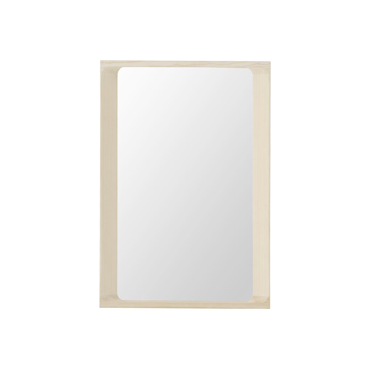 Arced mirror 80x55 cm from Muuto is made from spruce wood that has been treated with wood stain and finished with a clear matt lacquer to highlight the natural character of the wood. The mirror combines traditional wooden mirror style with a modern touch and has a subtle frame indentation which gives a charming, window-like feel. Use it in the hallway to create space, in the bedroom for an elegant detail, or in the living room as a stylish decor element. Available in light grey, light green, and light lilac.