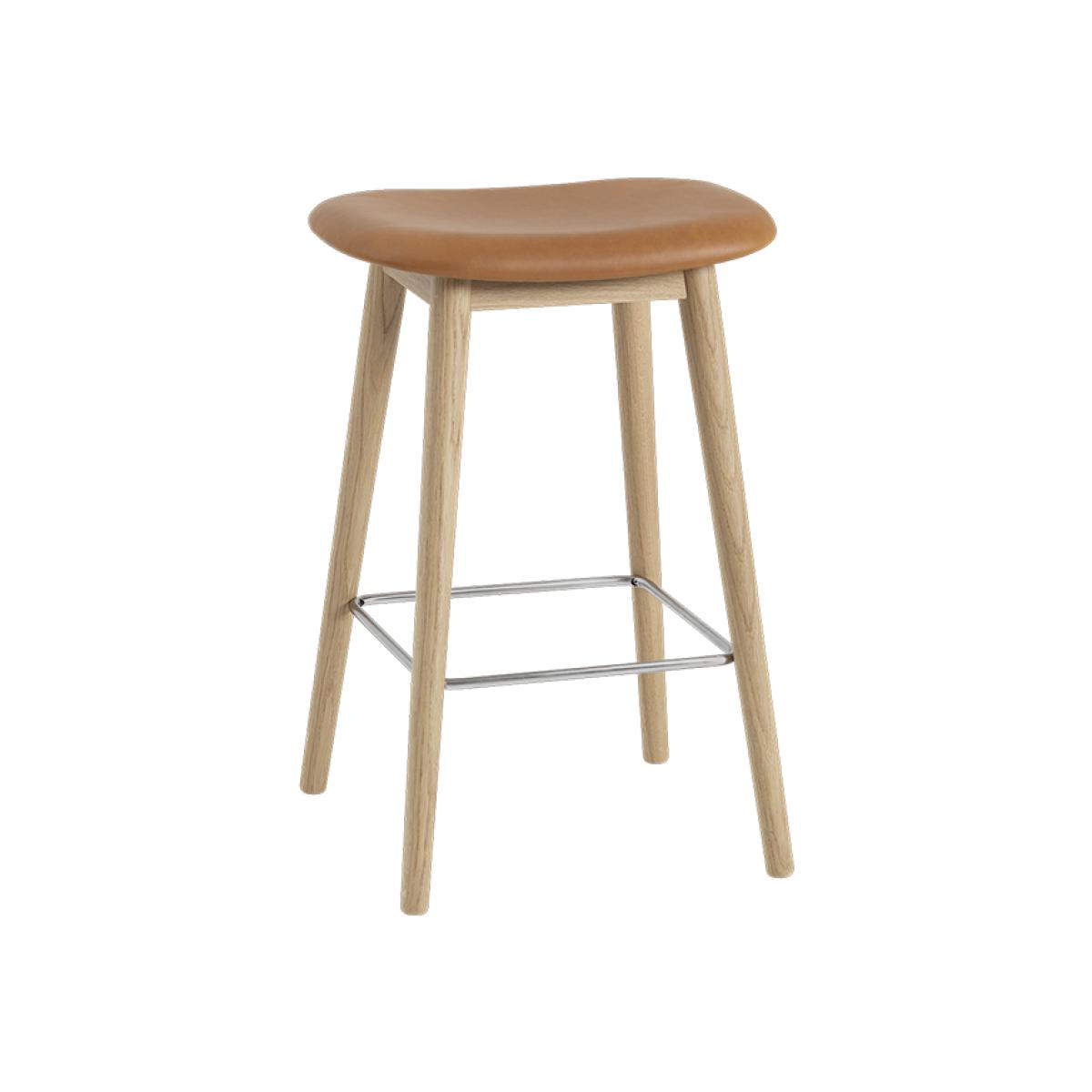Muuto Fiber counter stool 65 cm Leather cognac oak legs